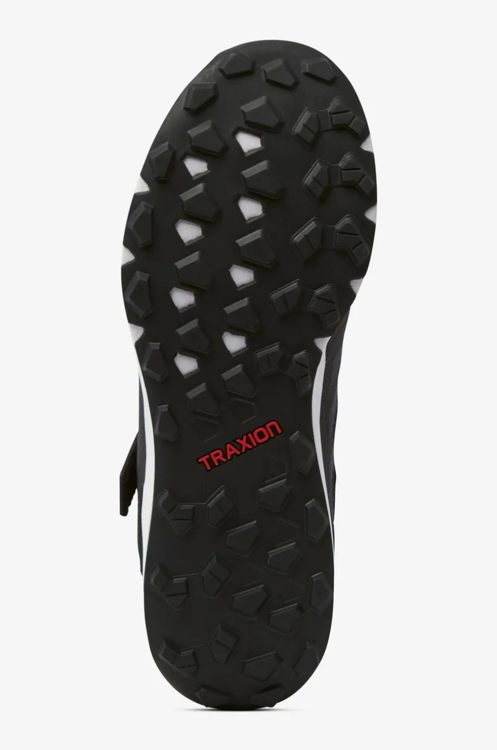 Ventilerende trailløbesko som fungerer lige godt i haven som i naturen, takket være støddæmpning i let vægt og greb under foden. Overdel i ventilerende mesh. Elastisk quicksnøre og justerbart velcrobånd. Let mellemsål i EVA og slidstærk Traxion-ydersål.