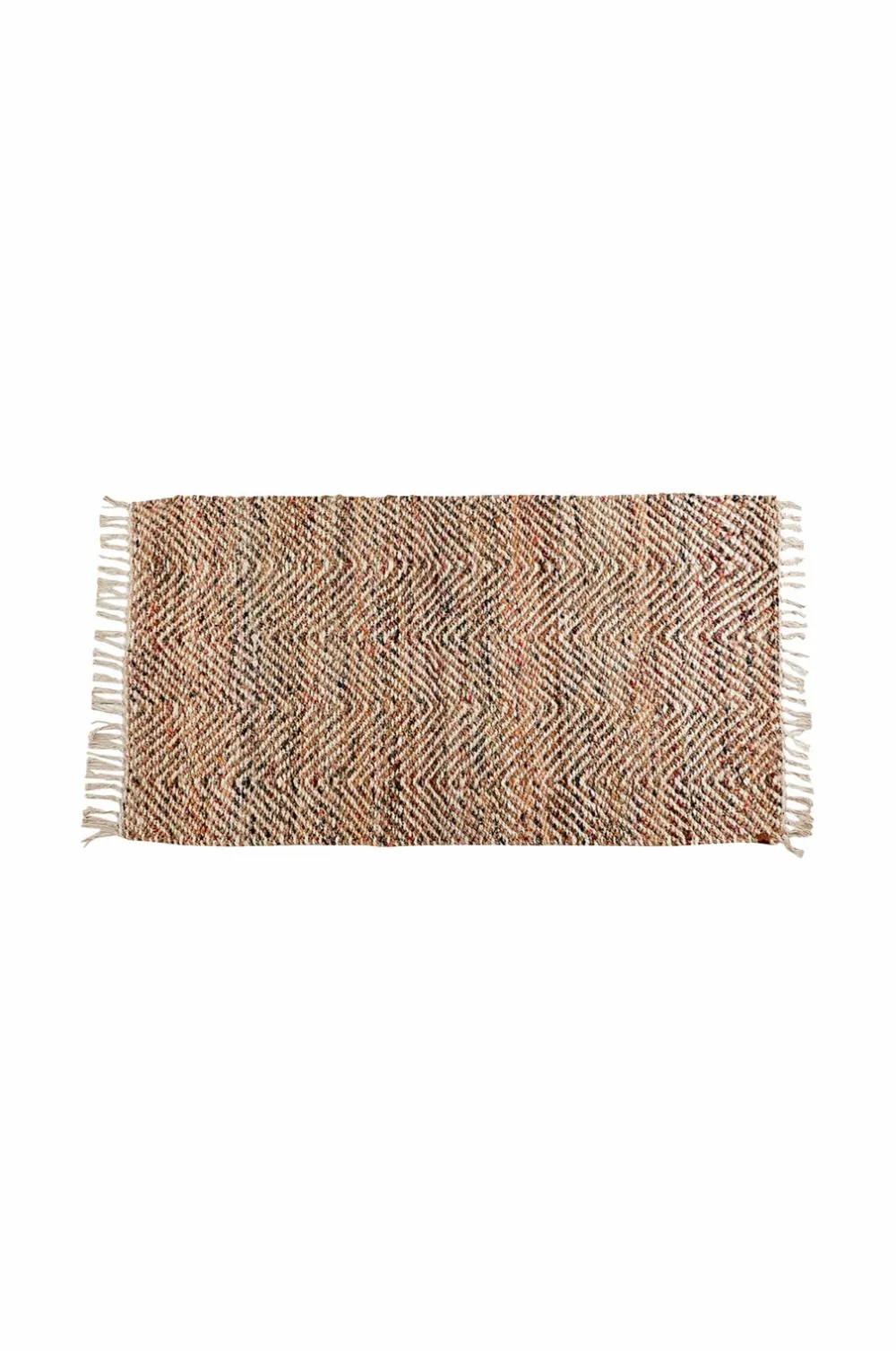 Smukt jutetæppe med farve, der skaber en hyggelig atmosfære i ethvert hjem. Tæppet har et hyggeligt look og frynser i begge ender.