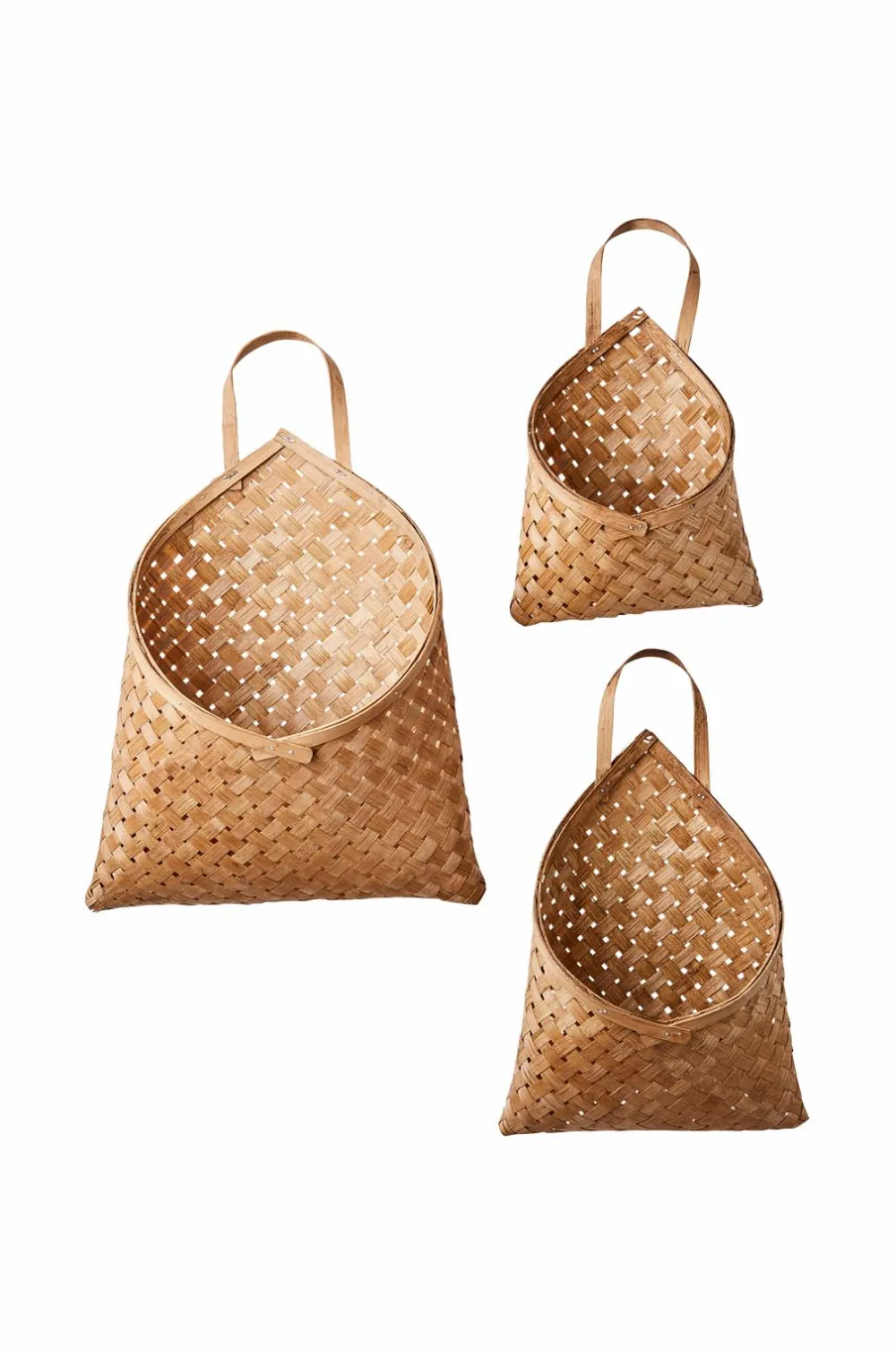 Håndlavede kurve i et sæt med tre forskellige størrelser. B20xd11xh31 cm, w24xd13xh38 cm, w32xd16xh47 cm