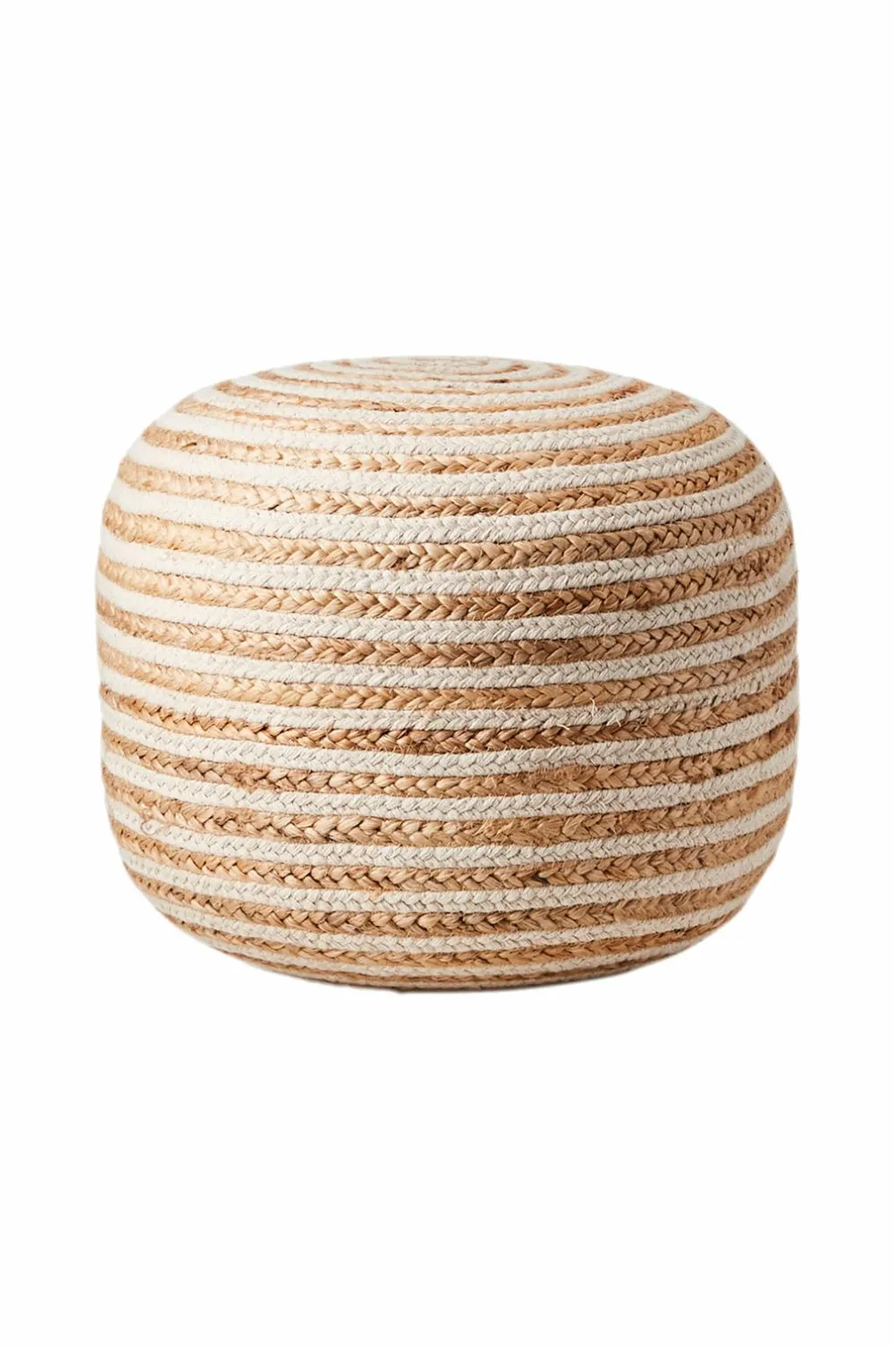 Håndvævet puf i en smuk naturfarve, der passer til ethvert hjem. Må kun pletrenses.