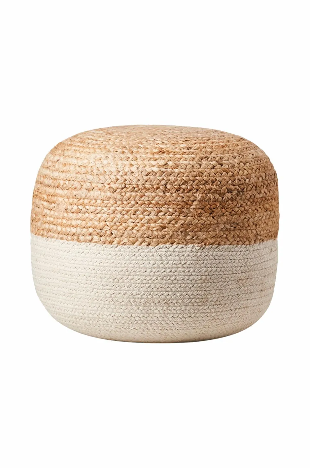 Håndvævet puf i en smuk naturfarve, der passer til ethvert hjem. Må kun pletrenses.