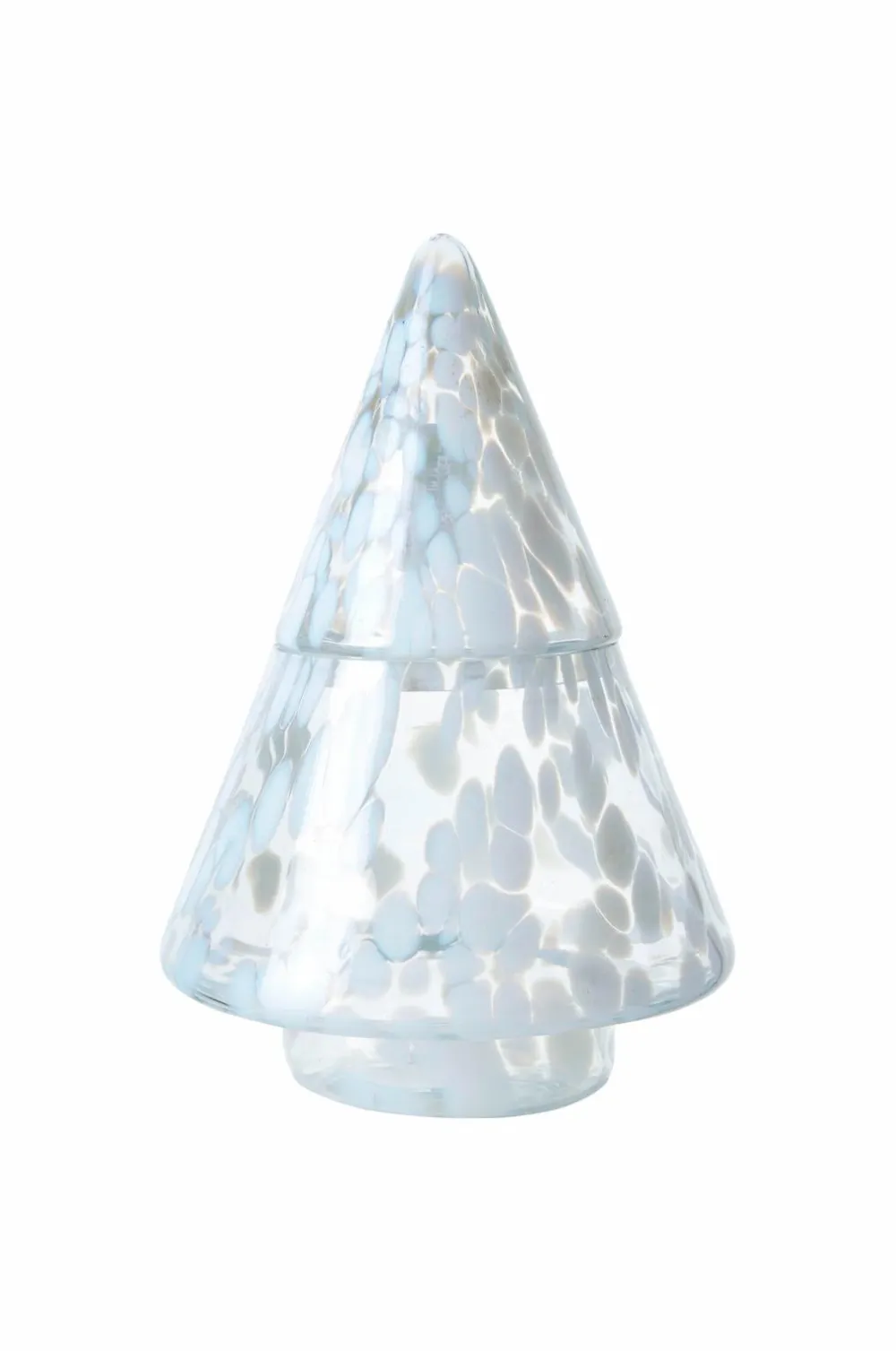 party skålen med låg i hvid og isblå udstråler en rolig og elegant stemning. Håndblæst glas med bløde farveovergange gør hvert stykke unikt. Den er perfekt til stilfuld opbevaring eller som en dekorativ detalje og giver et frisk og sofistikeret touch til ethvert rum.