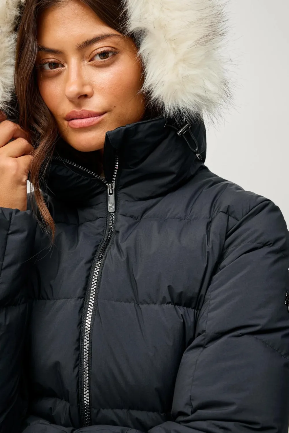 • Fast, justérbar hætte med aftagelig kunstpelskant