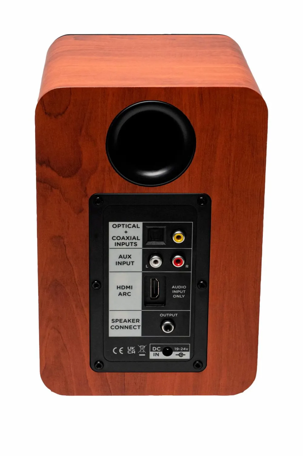 • MDF-kabinet med afrundede hjørner, PVC-finer, basrefleks bagpå.