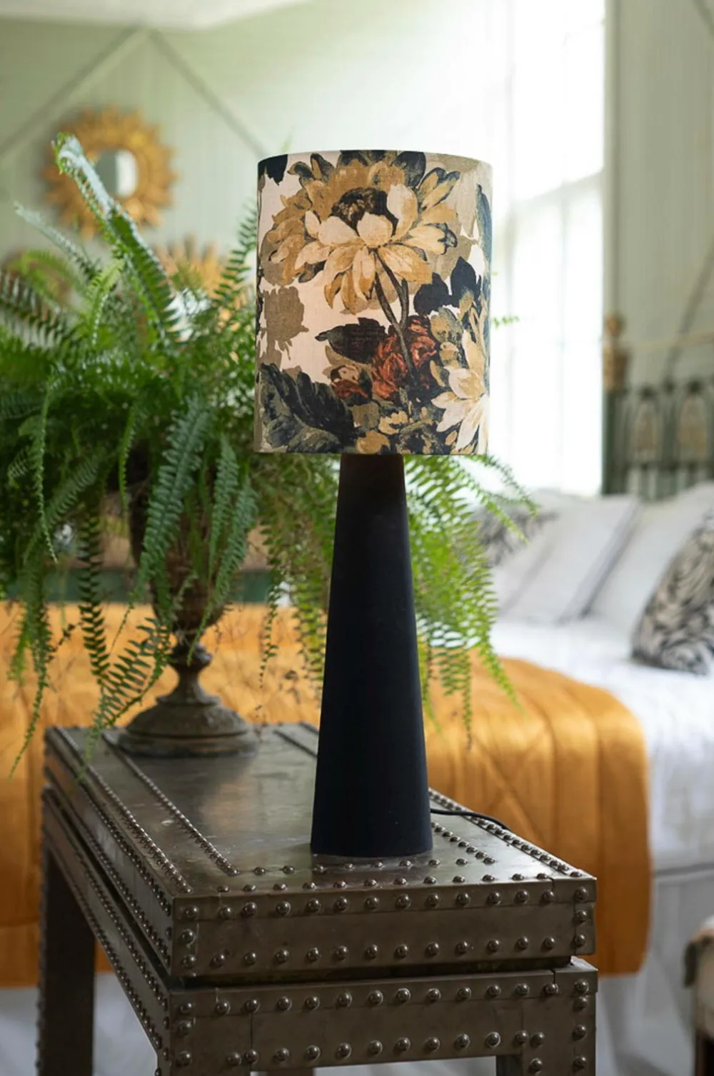 Cylinderformede lampeskærme passer ind i mange indretningsstilarter. De kan passe ind i både retro-stil og mere moderne indrettede rum. Vores cylinderformede lampeskærm er håndsyet i stoffet “sunflower”, et trykt stof med et smukt mønster i rige efterårsfarver. Kanterne er pænt foldet. De cylinderformede lampeskærme fås i to størrelser og flere farvekombinationer.