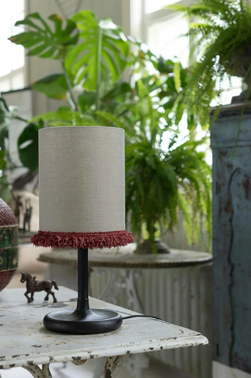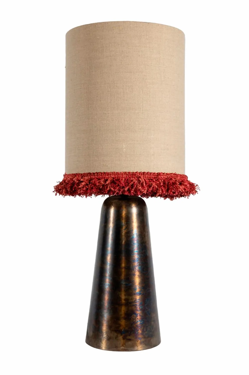 Cylinderformede lampeskærme passer ind i mange indretningsstilarter. De passer lige så godt i retrostil som i mere moderne indrettede rum. Lampeskærmen er håndsyet af ubleget hør. Kanterne er pænt foldet, og skærmens nederste kant er dekoreret med en tyk blondekant. Denne type kant ses ofte på eksklusive dekorative puder. Vores cylinderformede skærme fås i to størrelser og flere farvekombinationer.
