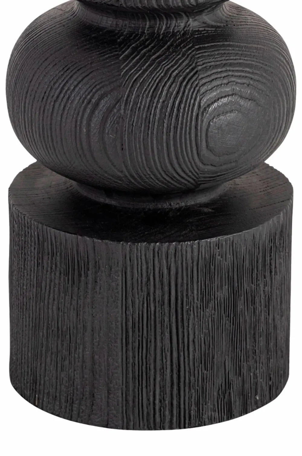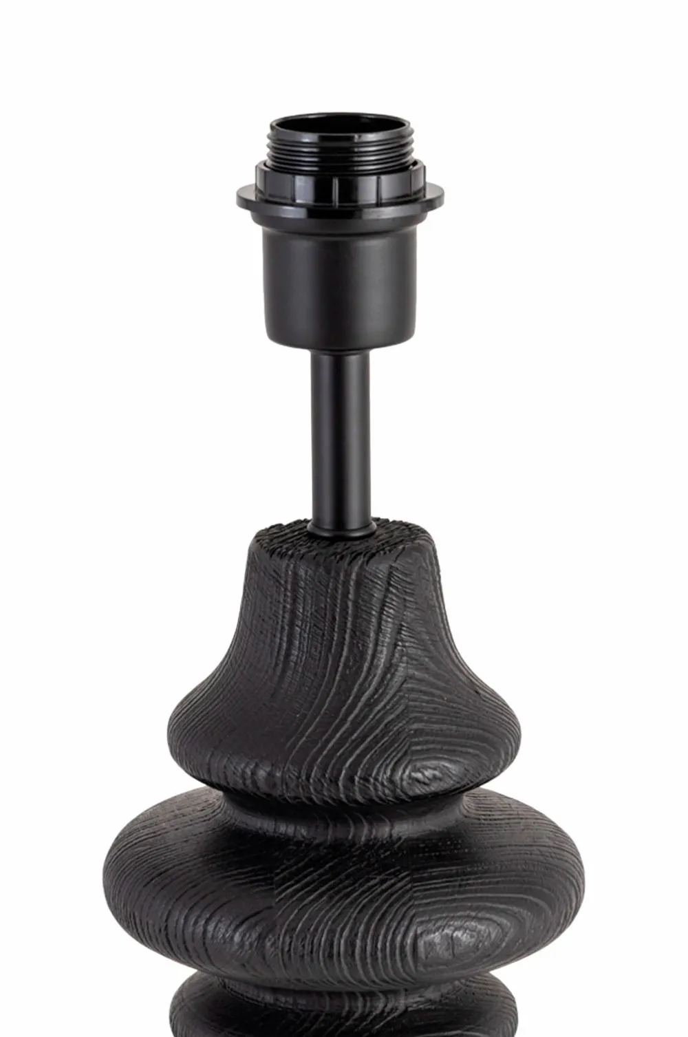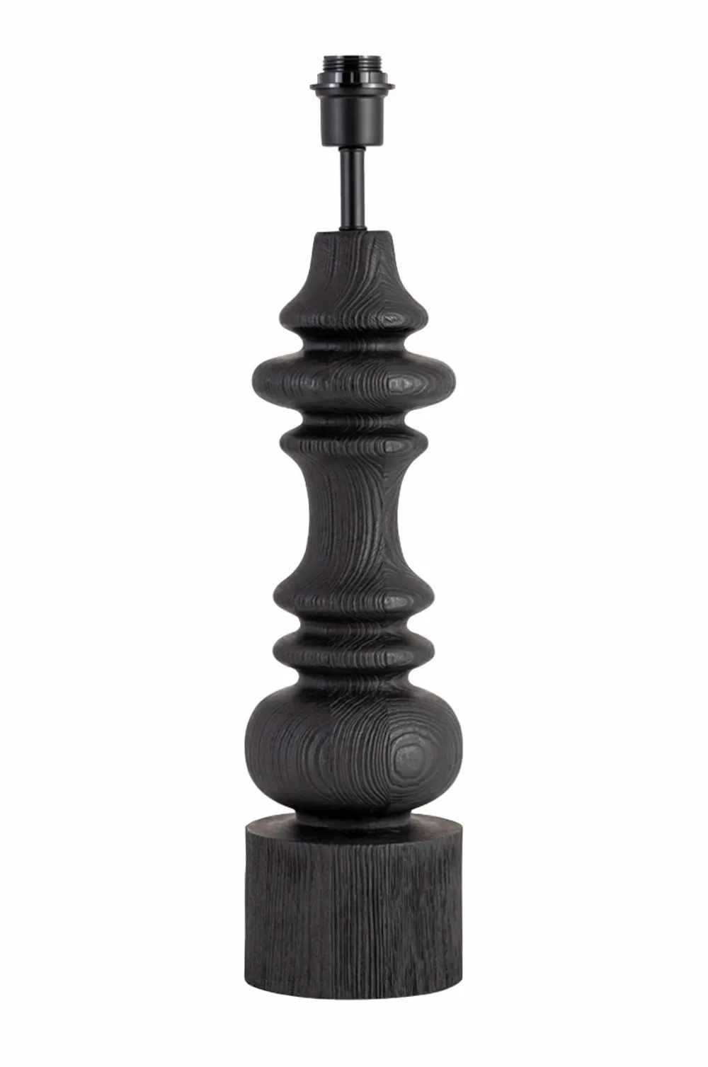 Bordlampefod af massivt fyrretræ. Den sandblæste overflade er bejdset sort for at fremhæve åretegningen på den bedste måde. Kan kombineres med både mindre og større lampeskærme efter din smag.