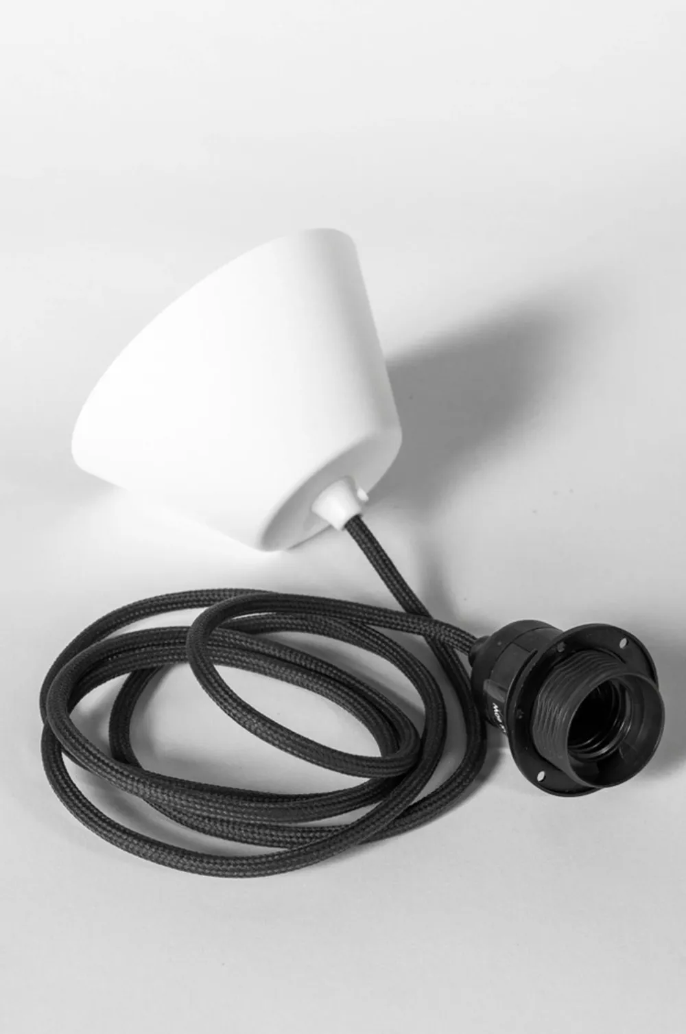 Et loftsophæng med tekstilbeklædt ledning, designet til at passe til vores loftslampeskærme med e27-beslag.