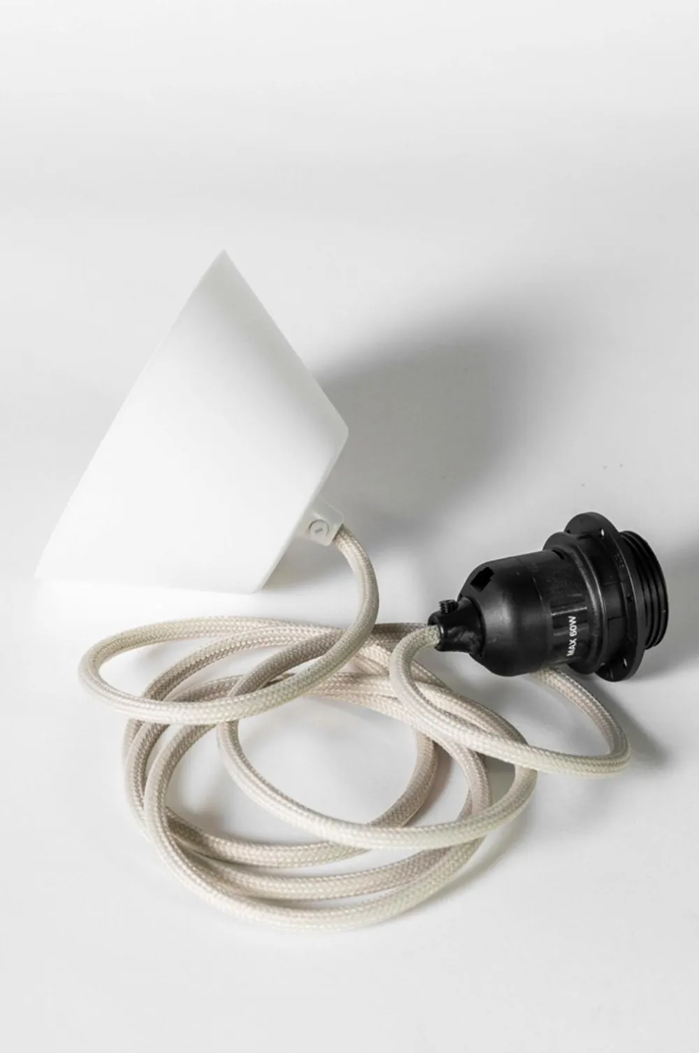 Et loftsophæng med tekstilbeklædt ledning, designet til at passe til vores loftslampeskærme med e27-beslag.