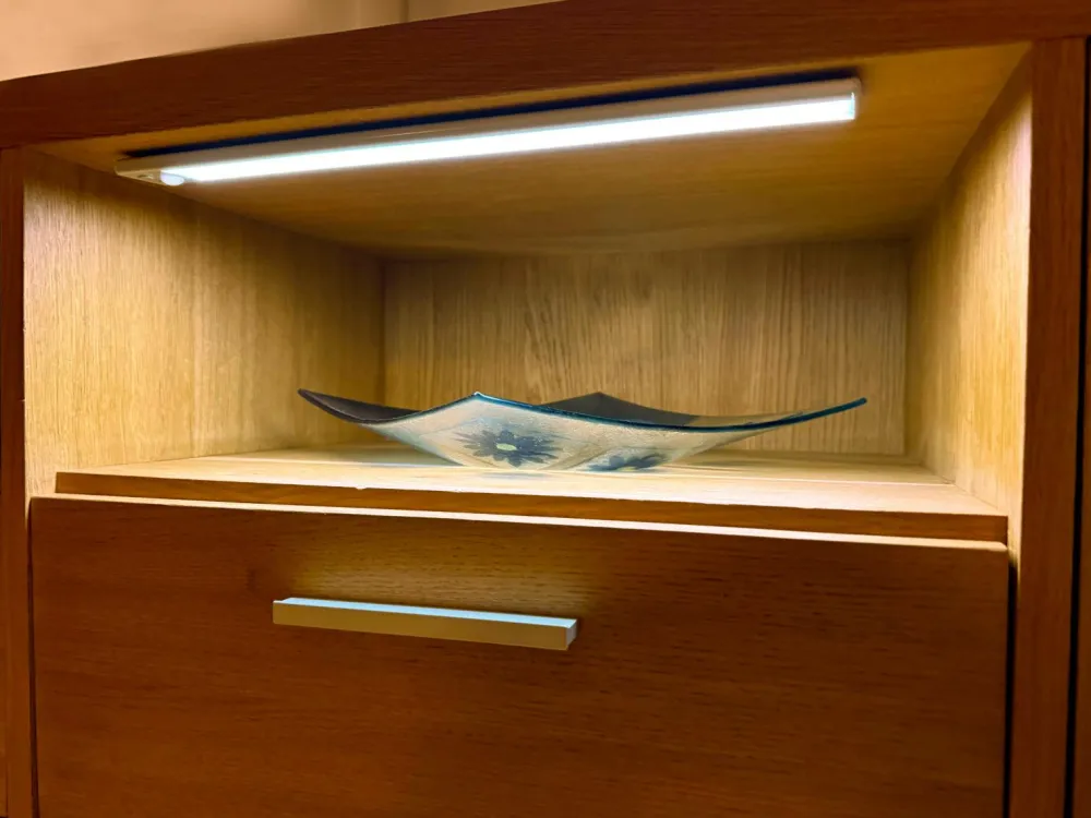 Praktisk og slank genopladelig belysning til at sætte i klædeskabet eller under et skab. Den har tre forskellige tilstande: tændt, slukket eller sensorstyret, hvilket sparer på batteriet. Når batteriet er afladet, tages det nemt ud af den magnetiske holder og oplades med en almindelig mobiloplader. Lampen har et usb-c-stik. Et kort opladningskabel med usb-c/usb-a medfølger.