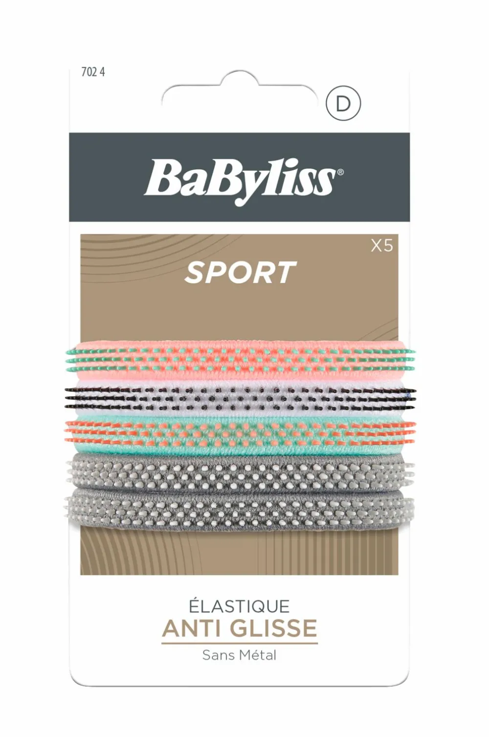 Sportselastikker med ny anti-slip-teknologi i form af små gummipigge på indersiden, der med garanti holder håret på plads, også ved fysisk anstrengelse. Grå/grøn/hvid/fersken. 5 stk. pr. pakke.