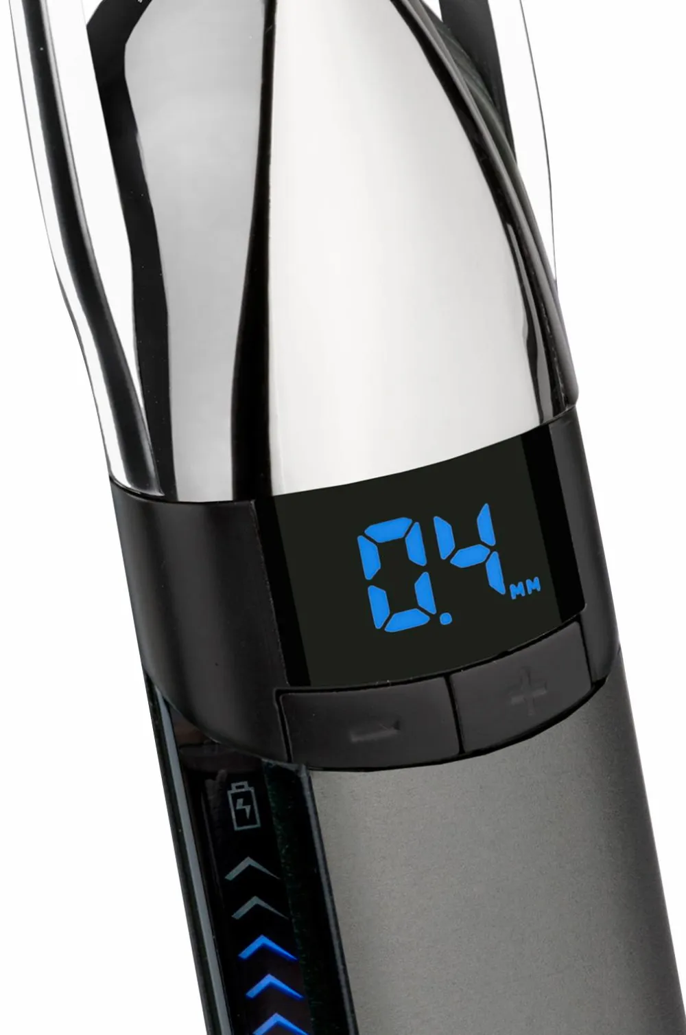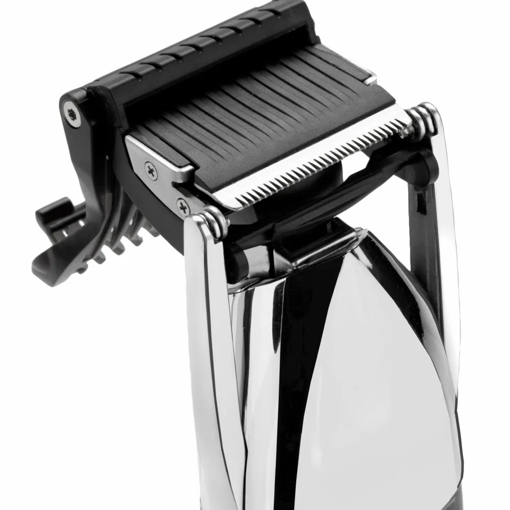 Japanske stålblade giver ekstrem skarphed til glat trimning, mens det fleksible trimmerhoved følger ansigtets konturer for ekstra komfort og kontrol. LED-displayet viser indstillingen af klippelængden fra 0,4 mm til 5 mm med præcis 0,2 mm justering for optimal længdekontrol.