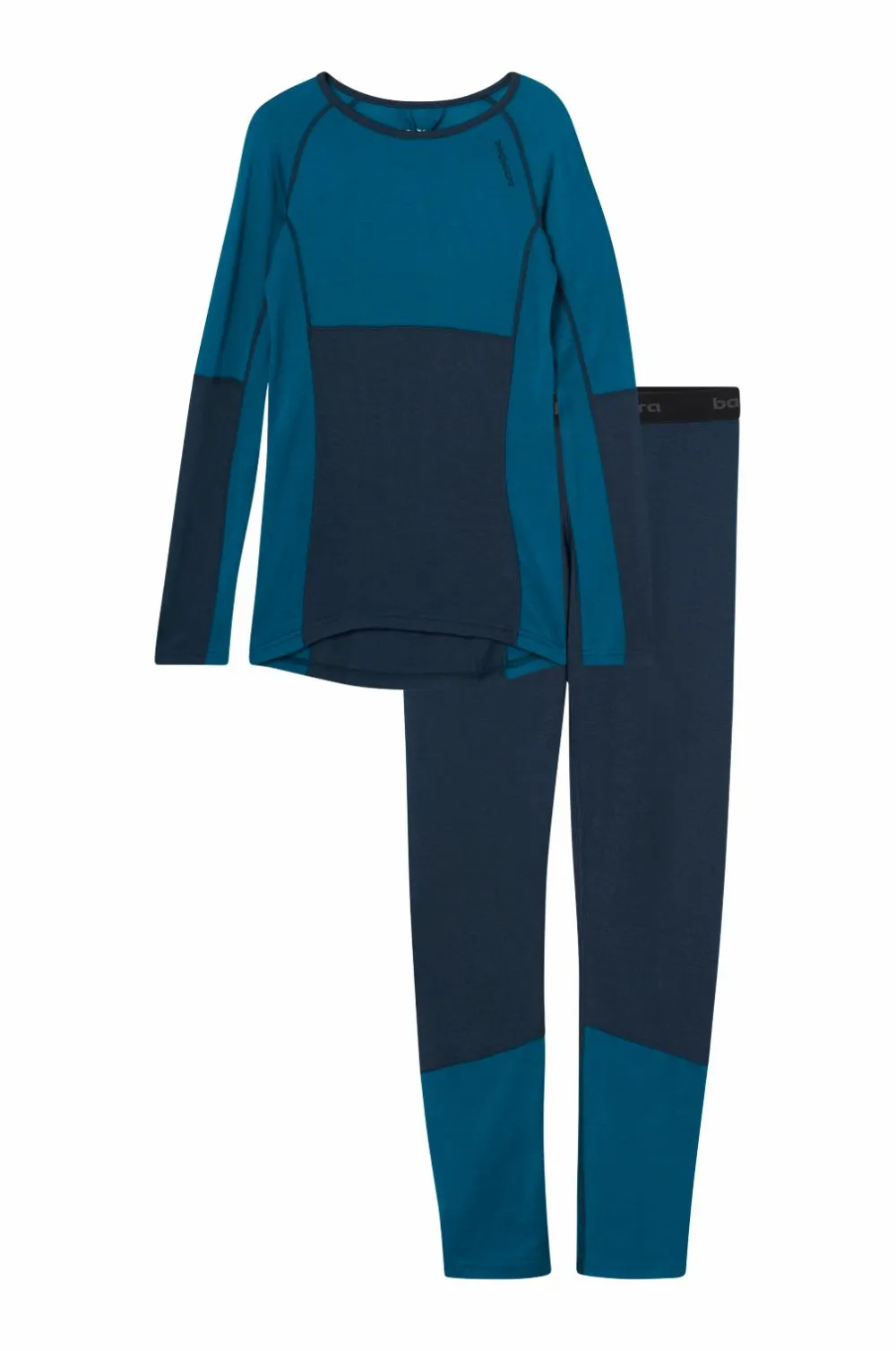 2-delt undertøjssæt i en blanding af merinould og lyocell, som er en regenatfiber lavet af cellulose. Materialet transporterer fugten væk tre gange hurtigere end ren merinould og sammen er de den perfekte blanding for dig, som gerne vil have det lidt mere køligt uden at du mister merinouldens fine egenskaber. Bløde flatlocksømme. Blusen har rund hals og bukserne har elastisk linning.