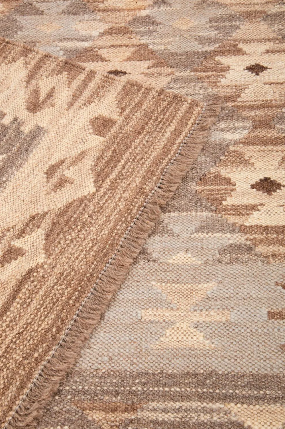 Et klassisk vævet tæppe med et geometrisk mønster over hele overfladen. Det vegetabilsk farvede garn garanterer en smuk og harmonisk farveskala, og da det er vævet i 100 % uld, er det både varmt og smudsafvisende. Et tæppe, der er let at placere og passer lige så godt foran en knitrende pejs ved din yndlingslænestol som i køkkenet. Alle vores kilim multi er vendbare, så du kan bruge begge sider af tæppet.