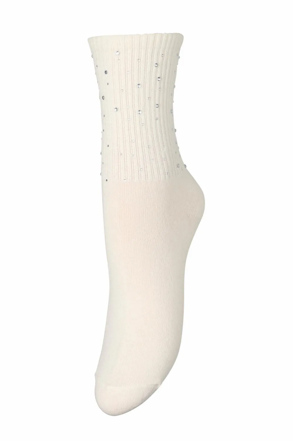 • Ribstrikket skaft med rhinsten hele vejen rundt