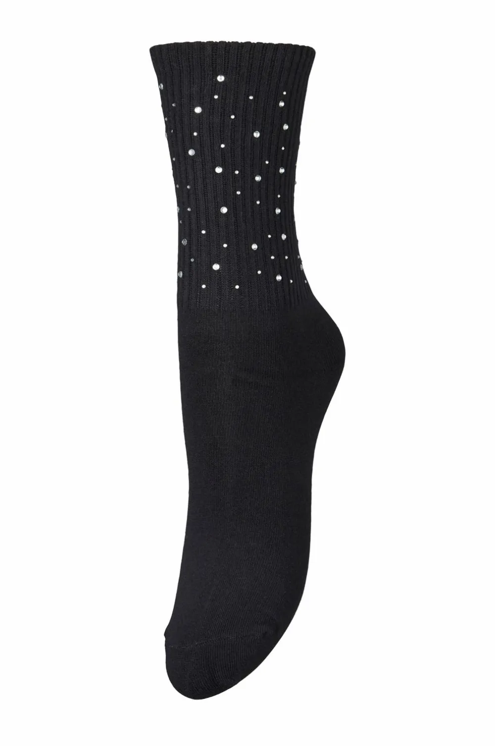 • Ribstrikket skaft med rhinsten hele vejen rundt