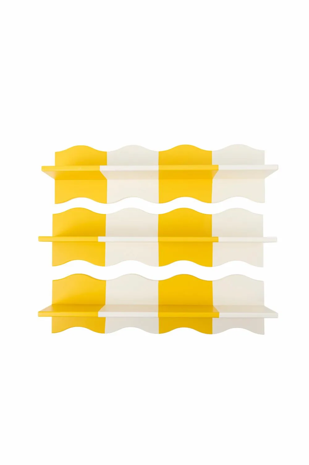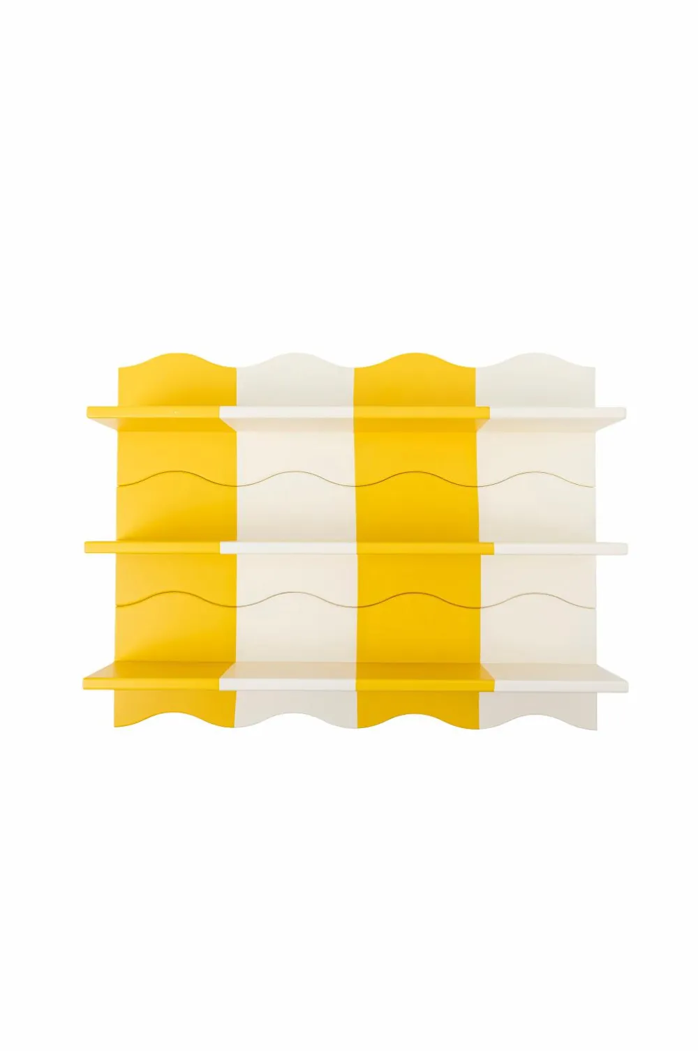 Bubbi-hylden fra bloomingville mini er lavet af lakeret mdf og har et bølget design. Den kan bruges alene eller kombineres med andre for at skabe en legende og funktionel vægudstilling.