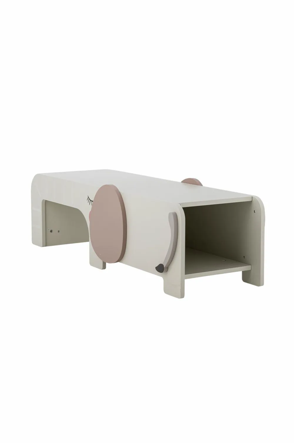 Ferdinand-bænken fra bloomingville mini ligner en sød elefant og er lavet af mdf. Dens charmerende form og åbne hylder gør den til en hyggelig og praktisk detalje til børneværelset med ekstra opbevaring skjult under sædet.