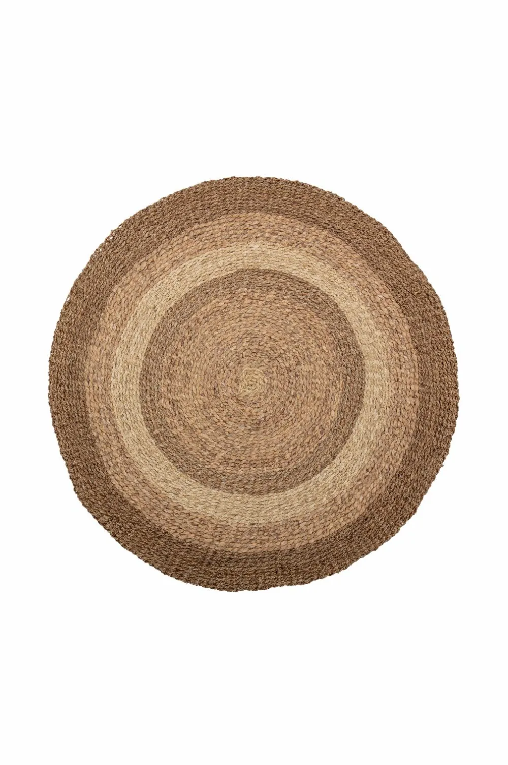 Dette runde tæppe er fremstillet af en blanding af naturfarvet søgræs i forskellige nuancer, hvilket gør hvert tæppe unik. Søgræs er et naturmateriale som egner sig godt til tæpper, da det er meget slidstærkt. Et tæppe af søgræs giver rummet et hyggeligt, naturinspireret udtryk. Ud fra et miljøperspektiv er søgræs et rigtig godt materialevalg. Det er fuldstændigt biologisk nedbrydeligt og kan genanvendes. Diameter 150, højde 0,5 cm.