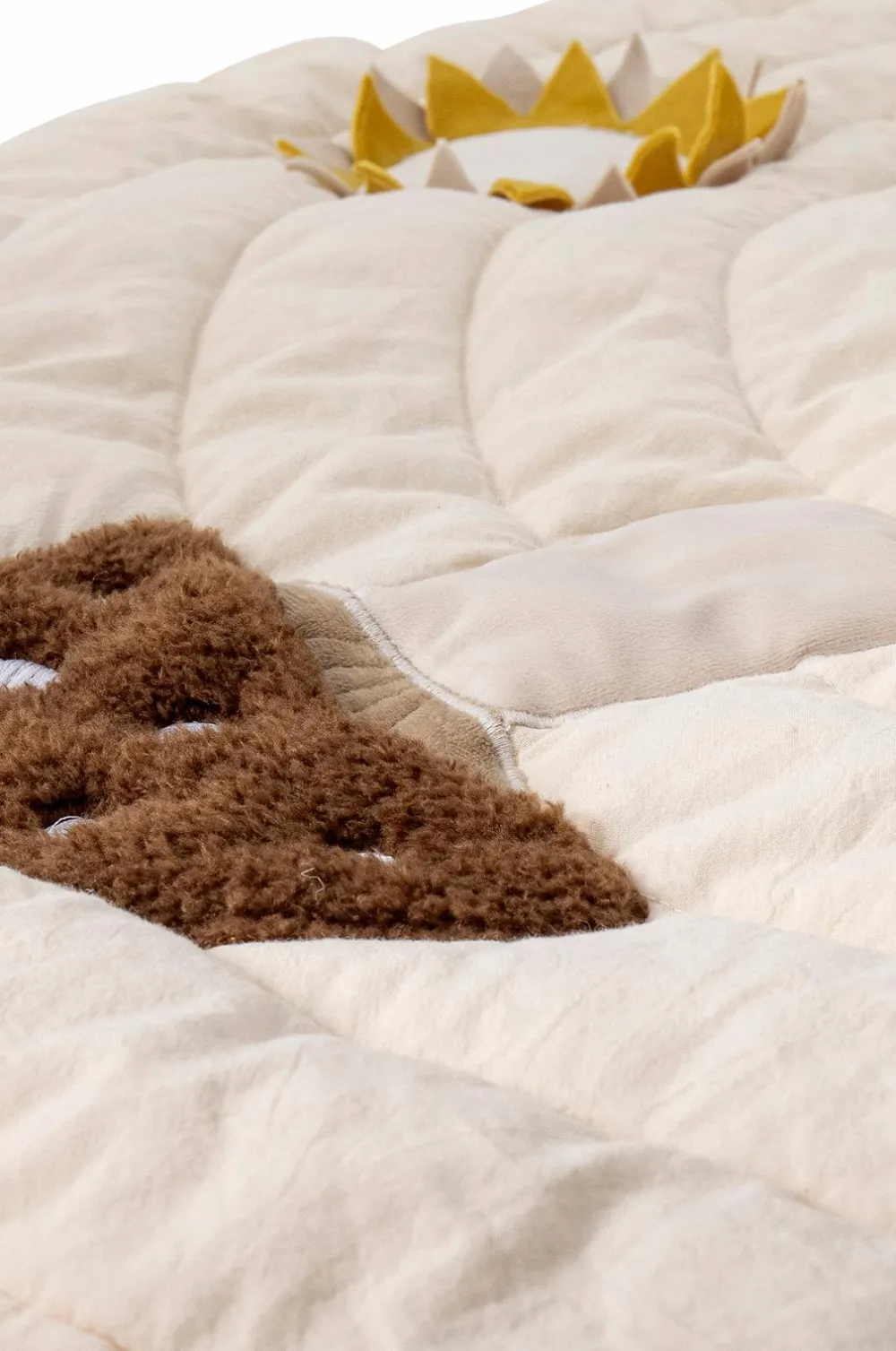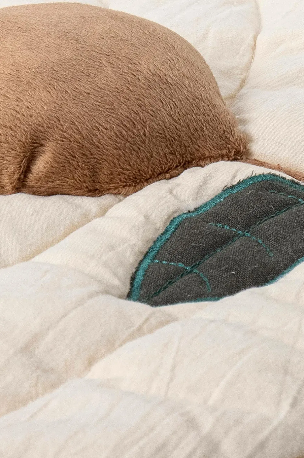 Agnes legetæppet fra Bloomingville MINI er et lille legetæppe med søde figurer, der opmuntrer barnet til at bevæge sig og udforske. Appelsinen giver en lyd, når man ttrykker på den, og pærens blade rasler ved berøring. Der er flere bløde overflader, som er dejlige for baby at røre ved. Samtidig er tæppet designet i afdæmpede farver, der passer ind i alle hjemmets rum. Legetæppet er også en perfekt gave til nybagte forældre. Diameter 100 cm
