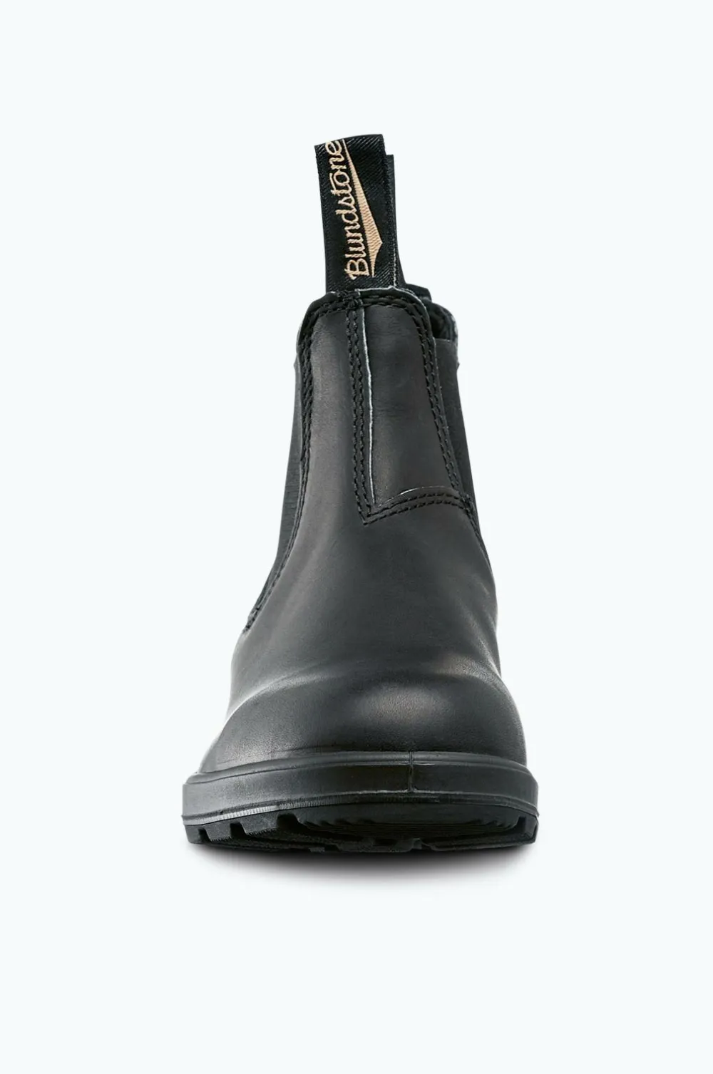 Classic 500 fra Blundstone er kraftige, klassiske chelseaboots i fint, lidt grovere skind med mat overflade. Brede elastikker på begge sider om skaftet. Vævet Blundstone-strop på skaftkanten både foran og bagpå. Helstøbt sål med groft mønster for godt fodfæste. Denne støvle er flot, let og robust.