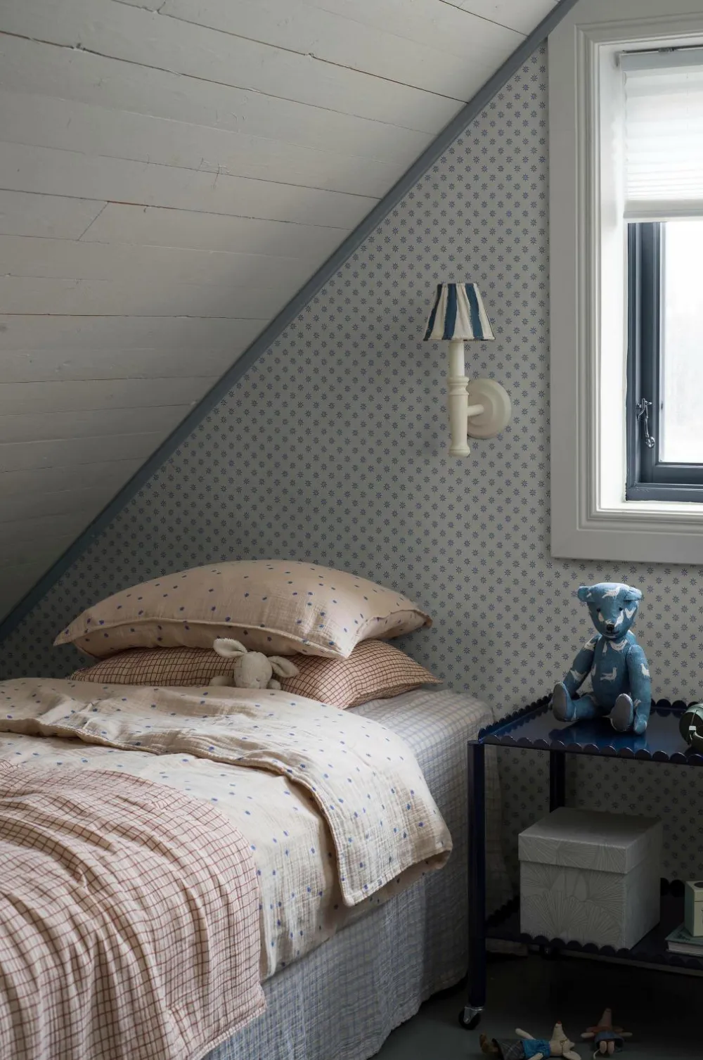Subtilt og sødt bringer vores skogsstjärna tapet den underspillede elegance af en svensk forårsskovbund til væggene i dit hjem. Dybtryk fanger hver eneste delikate detalje og skaber en varm, indbydende atmosfære i ethvert rum. Hæng dette fantastiske tapet op og skab et roligt og beroligende rum i dit hjem. Hver rulle er 10,05 m. Bredde 53 cm. Mønstergentagelse på 3,78 cm, lige match. Fremstillet i Sverige på et ikke-vævet materiale. Tapetet er easyup-marked, hvilket betyder, at du påfører limen direkte på væggen, og du behøver ikke at lave nogen grundmaling før.