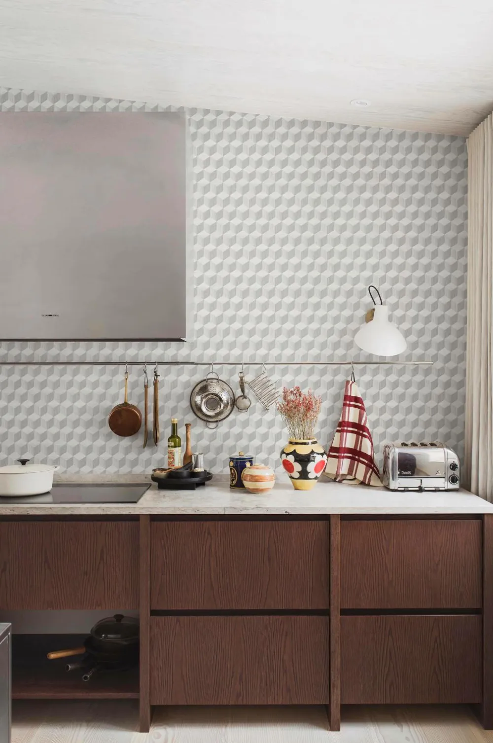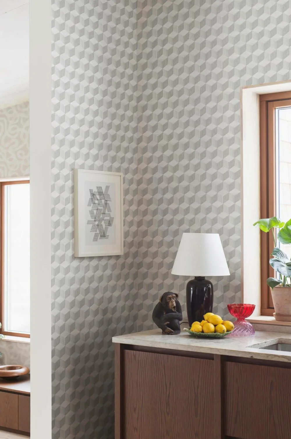 Oplev den tredimensionelle tiltrækningskraft ved vores cube tapet i kontrastfarver. Det har et lille og harmonisk geometrisk mønster, der giver dine vægge en subtil, men detaljeret dybde og interesse. Hæng cube tapet op i dit soveværelse, gang eller køkken for at få en moderne og stilfuld karakter. hver rulle er 10,05 m. Bredde 53 cm. Mønsterrapport på 13,25 cm, lige match. Fremstillet i Sverige på et ikke-vævet materiale. Tapetet er easyup-marked, hvilket betyder, at du påfører limen direkte på væggen, og at du ikke behøver at lave nogen grundmaling inden.