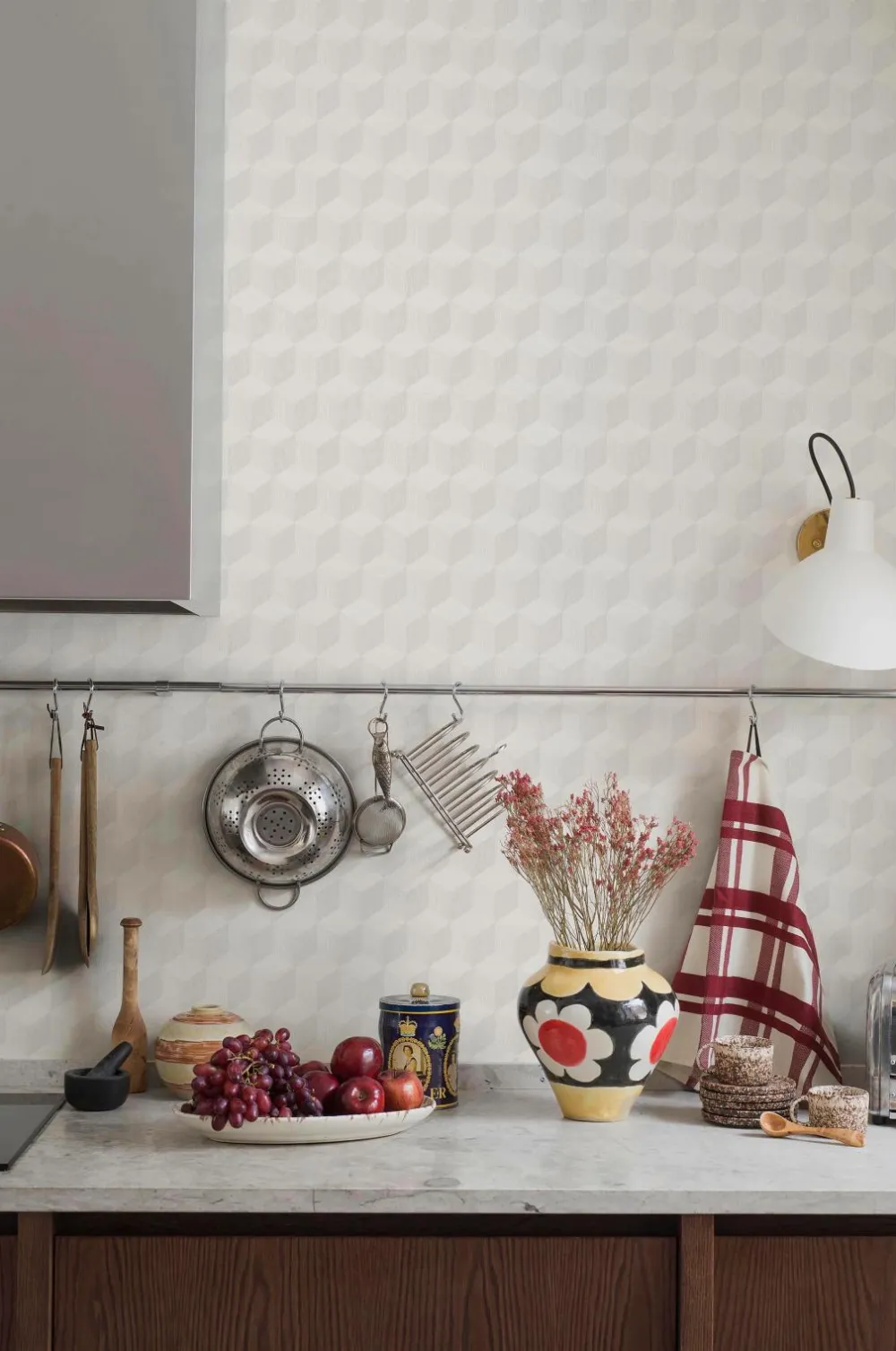 Oplev den tredimensionelle tiltrækningskraft ved vores cube tapet i kontrastfarver. Det har et lille og harmonisk geometrisk mønster, der giver dine vægge en subtil, men detaljeret dybde og interesse. Hæng cube tapet op i dit soveværelse, gang eller køkken for at få en moderne og stilfuld karakter. hver rulle er 10,05 m. Bredde 53 cm. Mønsterrapport på 13,25 cm, lige match. Fremstillet i Sverige på et ikke-vævet materiale. Tapetet er easyup-marked, hvilket betyder, at du påfører limen direkte på væggen, og at du ikke behøver at lave nogen grundmaling inden.