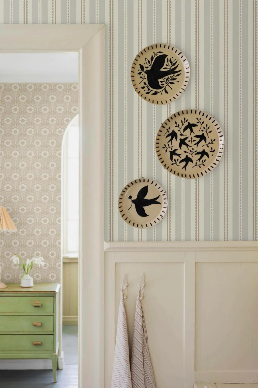 Bring et strejf af solskin ind i dit rum med vores hedda tapet designet af jenny hahne gadd. Striberne giver mønsteret et karakteristisk og moderne udtryk. Hæng dette hedda tapet op for at få et tidløst look, der er nemt at kombinere med andre farver og mønstre i dit hjem. Hver rulle er 10,05 m. Bredde 53 cm. Mønstergentagelse på 0 cm, tilfældigt match. Fremstillet i Sverige på et ikke-vævet materiale. Tapetet er easyup-marked, hvilket betyder, at du påfører limen direkte på væggen, og du behøver ikke at lave nogen grundmaling før.