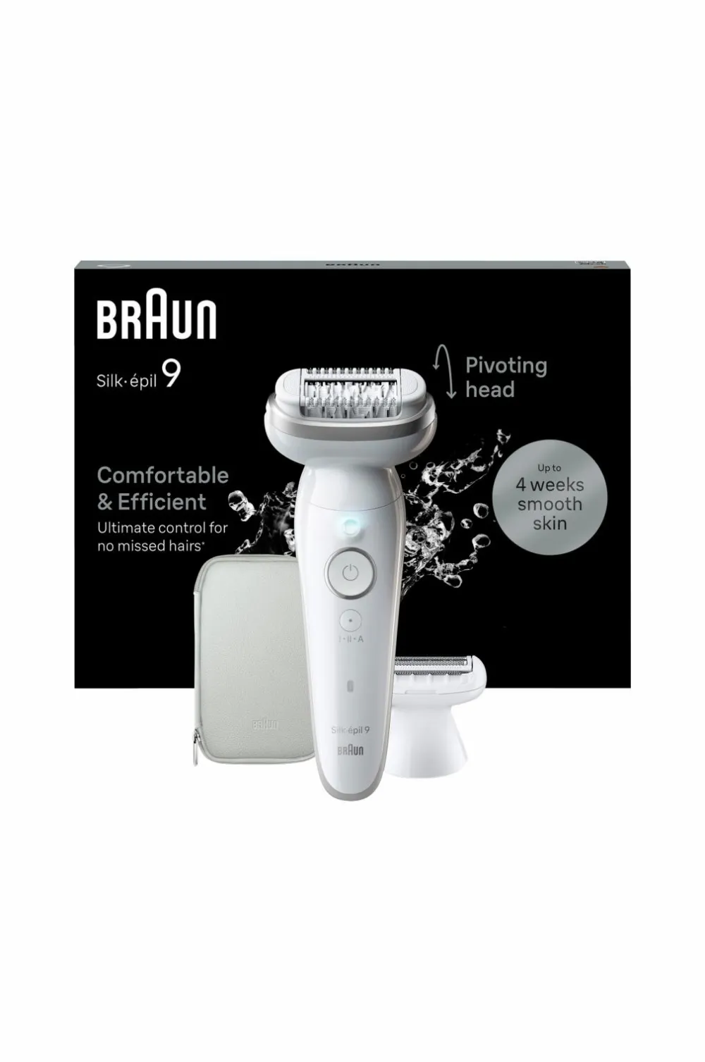 Braun Silk-épil 9 9-041 Epilator giver langvarig glat hud i op til en måned, bekvemt når som helst. Denne ledningsfri våd- og tørepilator har et bredt, drejeligt hoved, der ubesværet følger dine konturer. Med 40 MicroGrip-pincetter fanger den hår helt ned til 0,5 mm, hvilket sikrer langvarig glathed.