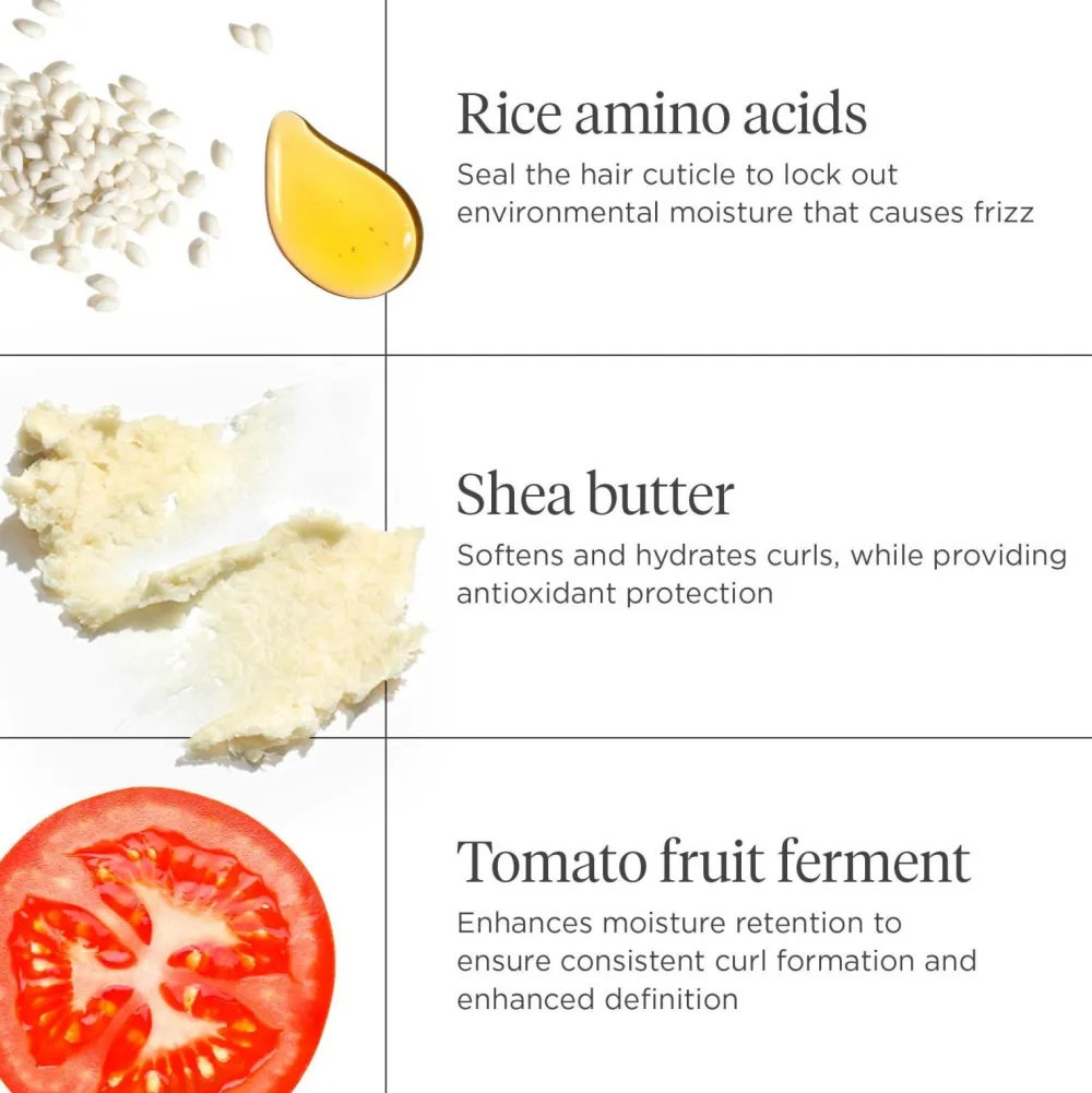 Curl Charisma™ Rice Amino + Shea Curl Defining Conditioner er tilsat risaminosyrer og sheasmør for at fugte og vedligeholde sundt udseende krøller. Tomatfrugtferment-ekstrakt hjælper med at fremme ensartet krøldannelse og forbedrer livskraften og strukturen i hver enkelt krølle. Denne blide, ultrahydratiserende balsam er formuleret med sheasmør og avocadoolie for at forbedre blødheden uden at tynge håret ned. Formuleret med 96% naturligt afledte ingredienser.