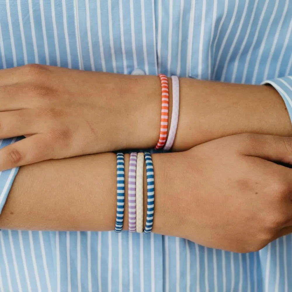 Hårelastikker i fire glade farvekombinationer, der ser lige så godt ud i håret, som de gør omkring håndleddet. Elastikken sidder godt og passer til de fleste hårtyper. Fremstillet af genindvundet polyamid.