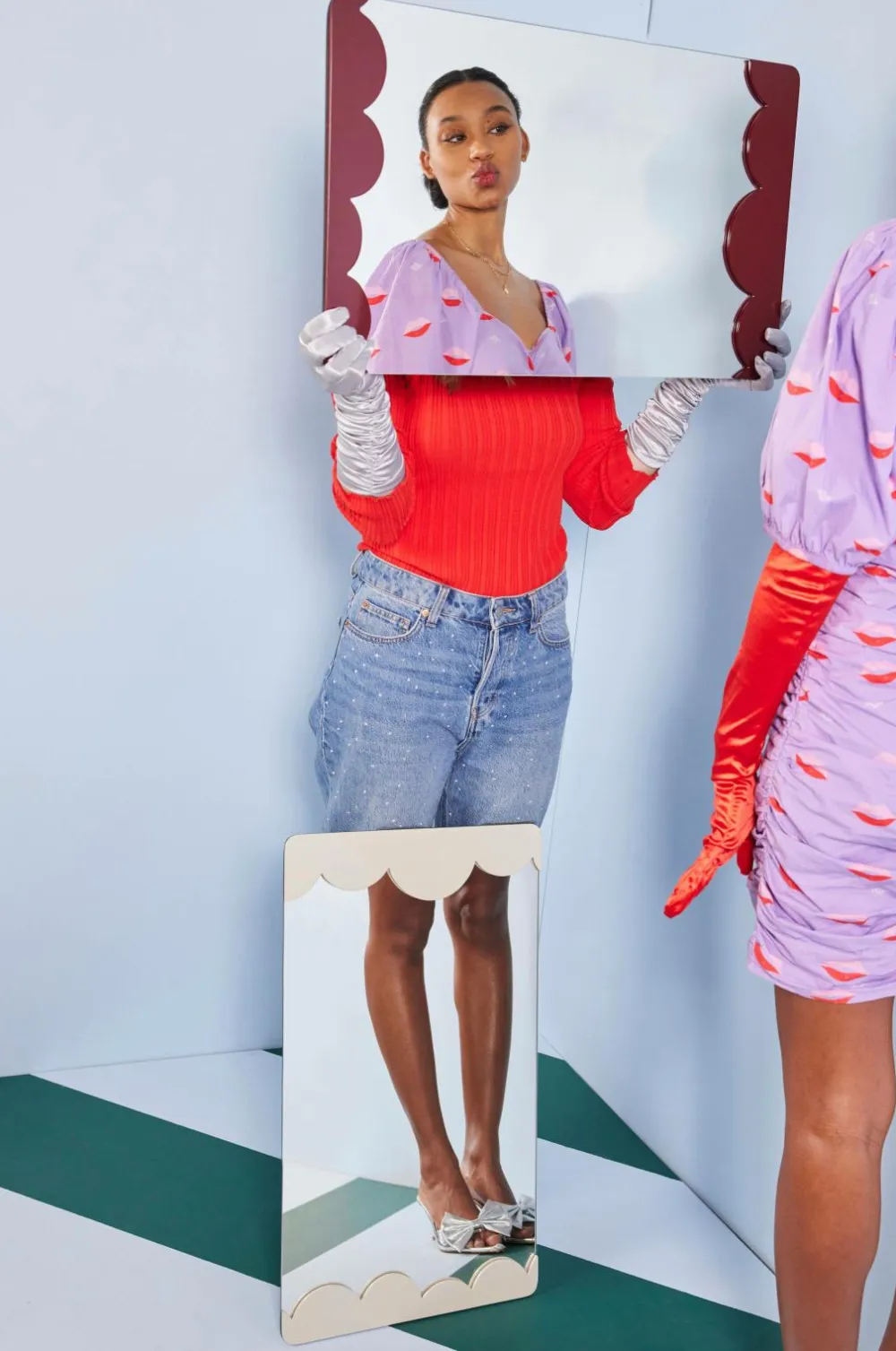 De bløde, afrundede former er tegnet i hånden og skaber legende halvcirkler, der får os til at tænke på luftige skyer. Rammen har et anderledes design, hvor den ikke sidder på den klassiske måde med fire sider, men kun på to af siderne. Det gør den lettere og giver mulighed for en mere smidig kombination med flere objekter. Rammen er sprøjtelakeret mdf og har to forskellige ophæng (vandret og lodret) for at kunne variere den måde, den holdes på. Et spejl, vi absolut vil se i mange hjem for at lyse op i et rum. Fås i beige og bordeaux. Design Byon Studio.