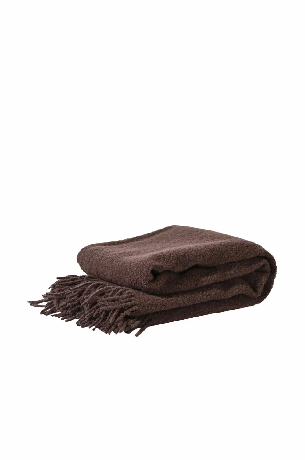 Denne bouclé-borddug har en utrolig luksuriøs fornemmelse og passer smukt ind overalt – uanset om du hygger dig indendørs eller slapper af udenfor. Den giver en hyggelig varme og ser også fantastisk ud draperet over en sofa takket være de dekorative frynser. De små eller store uldløkker er fremstillet af 80 % uld og 20 % polyester i et bouclégarn og giver en ekstra blød og voluminøs tekstur uden at veje mere. Denne kastanjebrune nuance passer perfekt ind i ethvert miljø. Med en generøs størrelse på 130 × 170 cm giver den både rigelig dækning og stilfuld flair. Må kun vaskes i hånden og fås også i andre farver. Design Byon Studio.