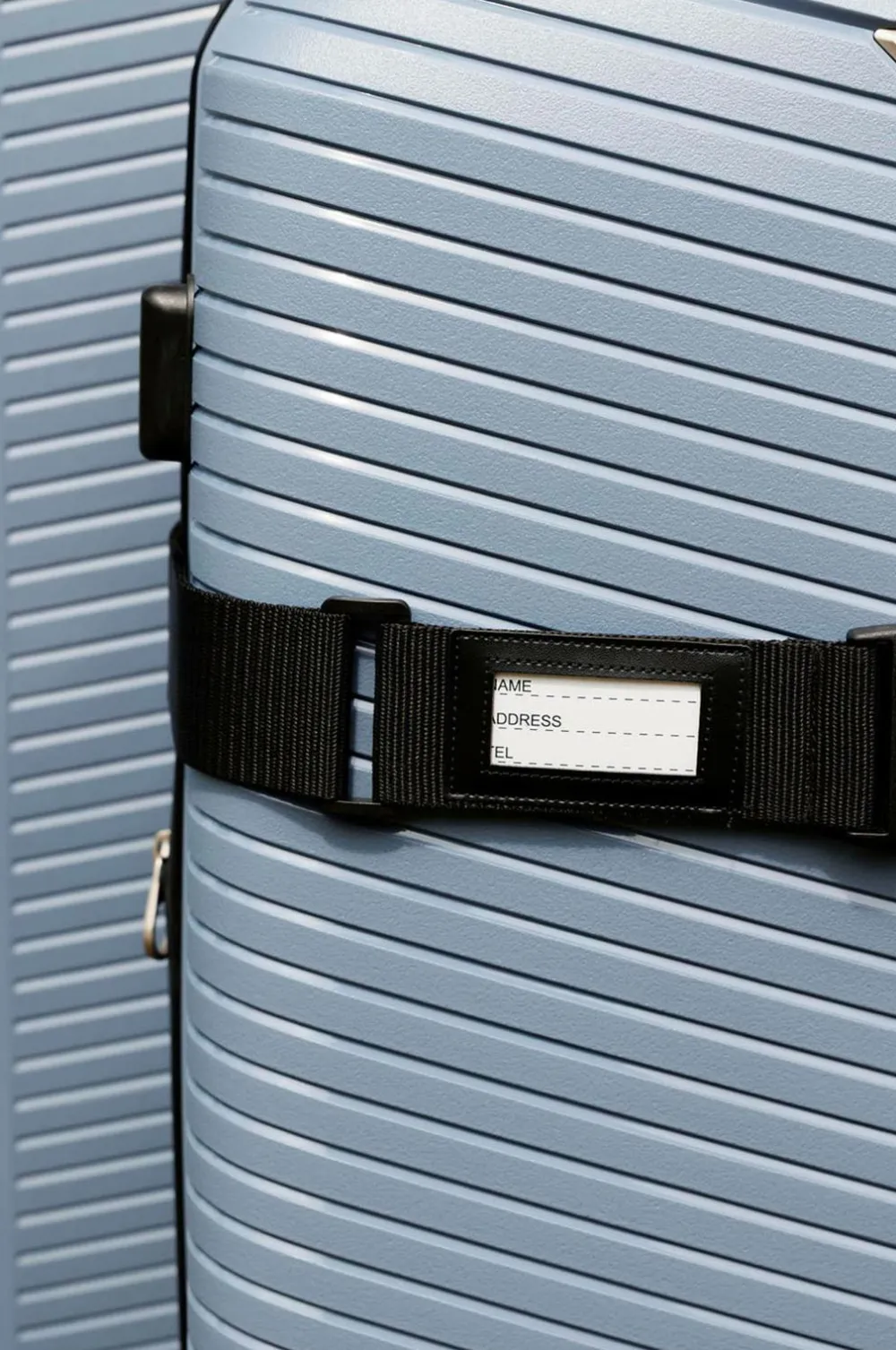 • Blåt bagagemærke med adresselabel til nem identifikation