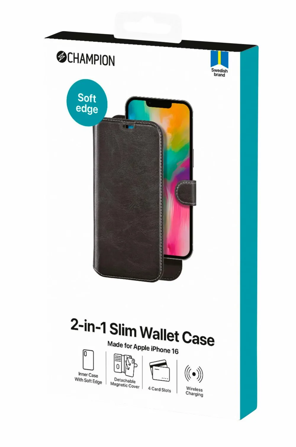 Champion Slim Wallet Case hjælper dig med at holde dine vigtigste ting samlet på ét sted. Du har praktisk beskyttelse til din mobiltelefon, mens etuiets fire kortholdere og lomme til sedler erstatter din pung. Slim Wallet Case har et stilfuldt ydre i kunstlæder, mens din mobiltelefons skærm er beskyttet mod ridser af coverets glatte indre. Den integrerede mobilskal inde i pungetuiet giver stødabsorbering og beskytter din telefon mod fald og ridser. Du har selvfølgelig stadig fuld adgang til telefonens kamera, knapper og tilslutninger, når etuiet er på, og låget holdes sikkert på plads med en magnetisk lås.