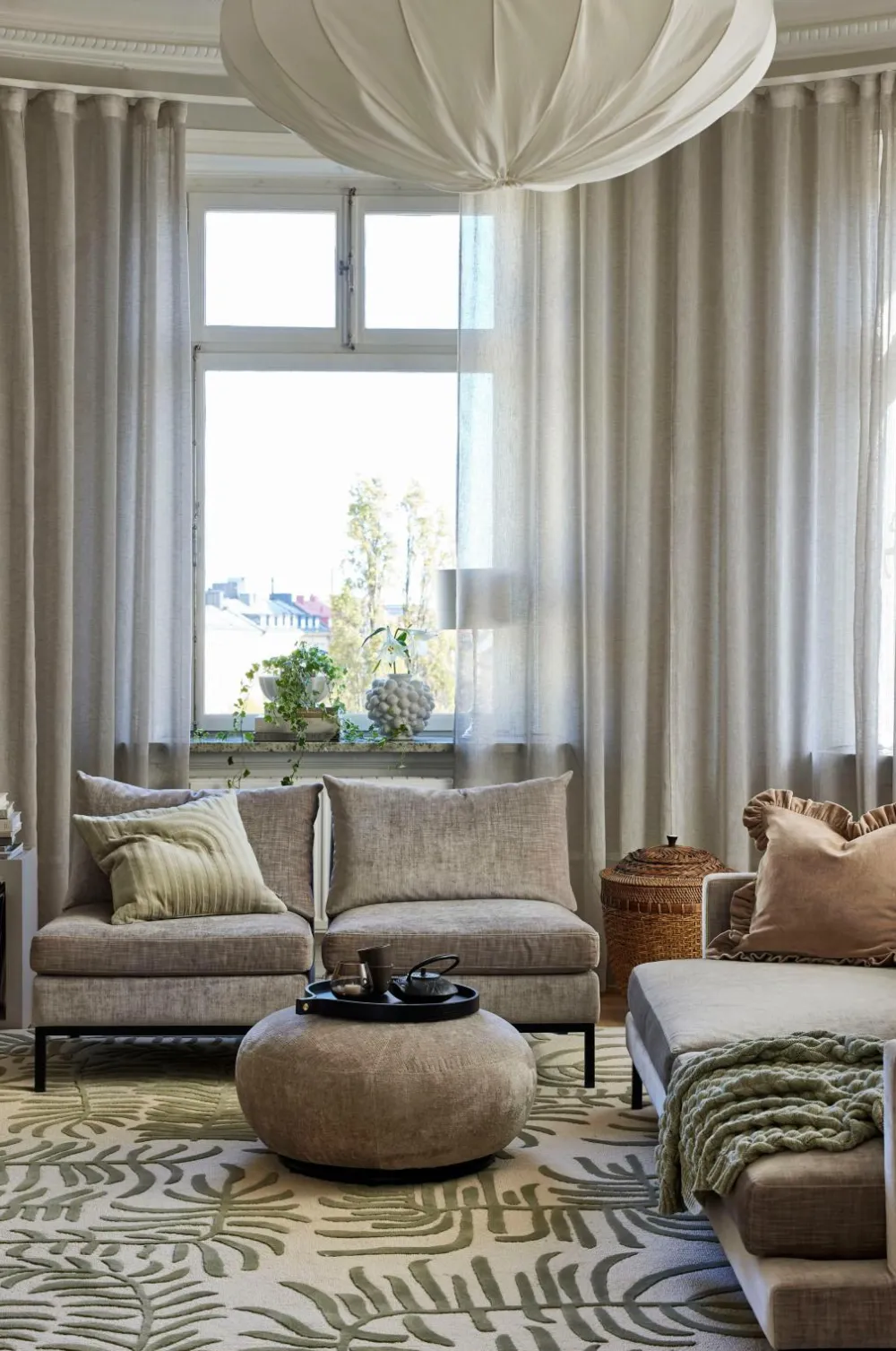 Palma Green tæppet er et eksklusivt, håndlavet uldtæppe med en tyk og blød luv.