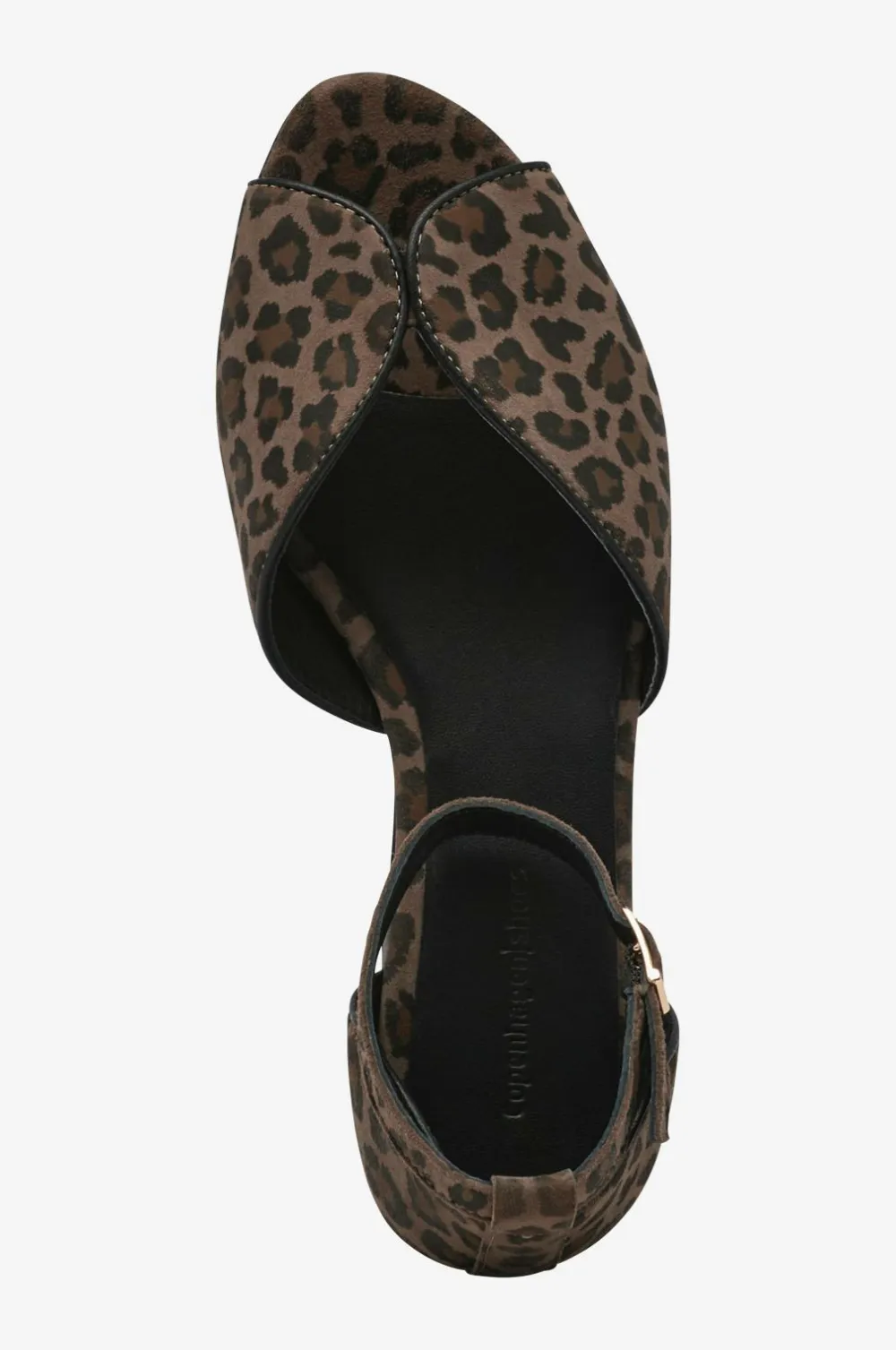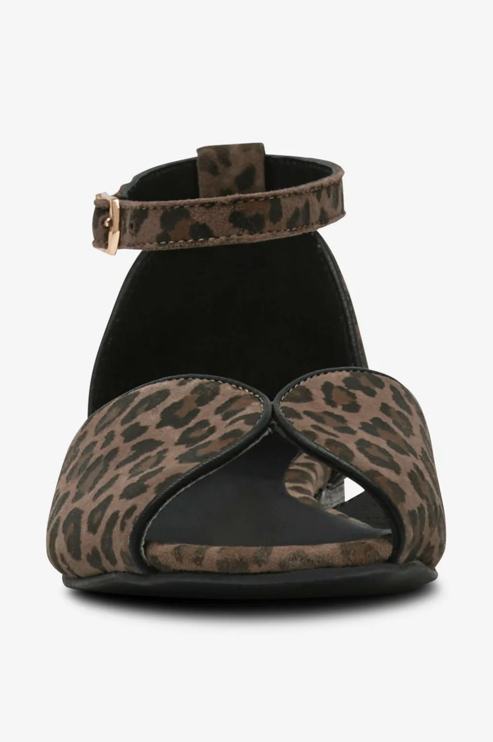 • Leopardmønstrede sandaler med hæl i blødt ruskind