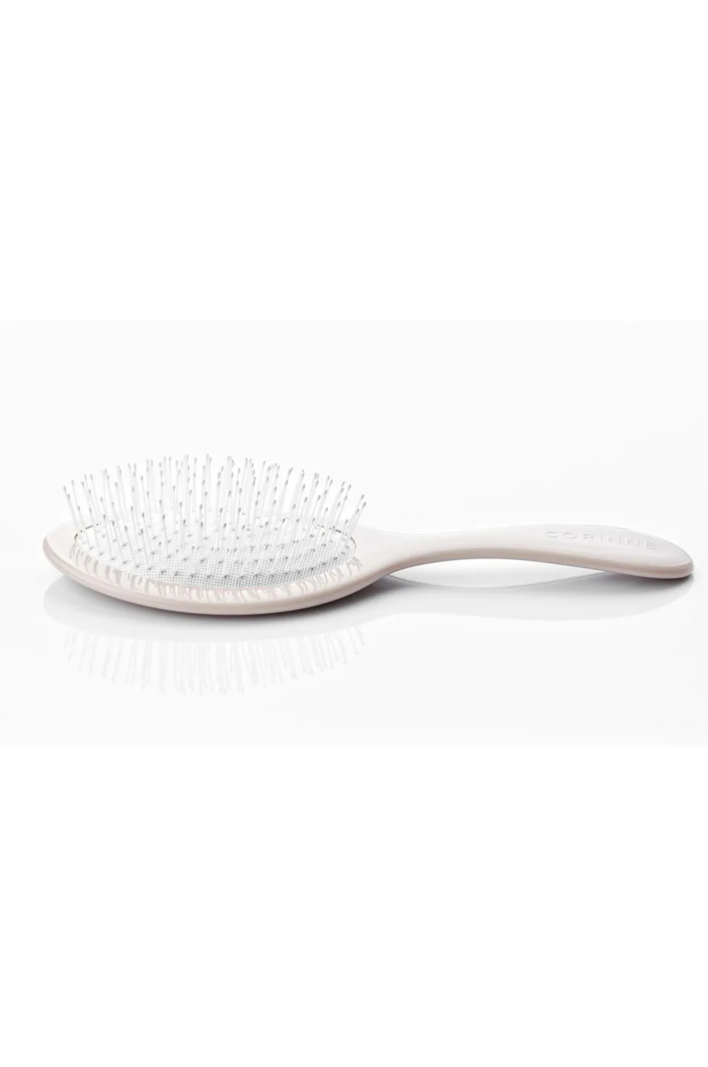 Hårbørste med skånsomme børster af nylon til vådt hår. Hårbørsten leveres i en praktisk toilettaske.
