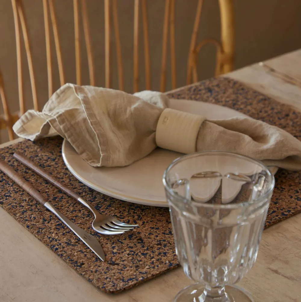 Forgyld din dukning med dette fine bordsunderlæg i kork & återvunnen plast. Da alle produkter er fremstillet til brug i kork, gør det, at hvert produkt er unikt og ser forskelligt ud.