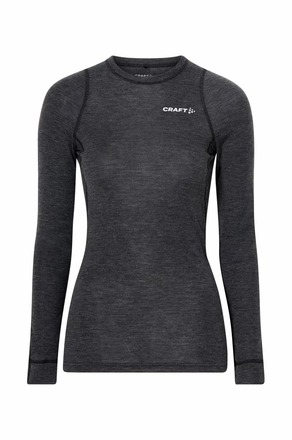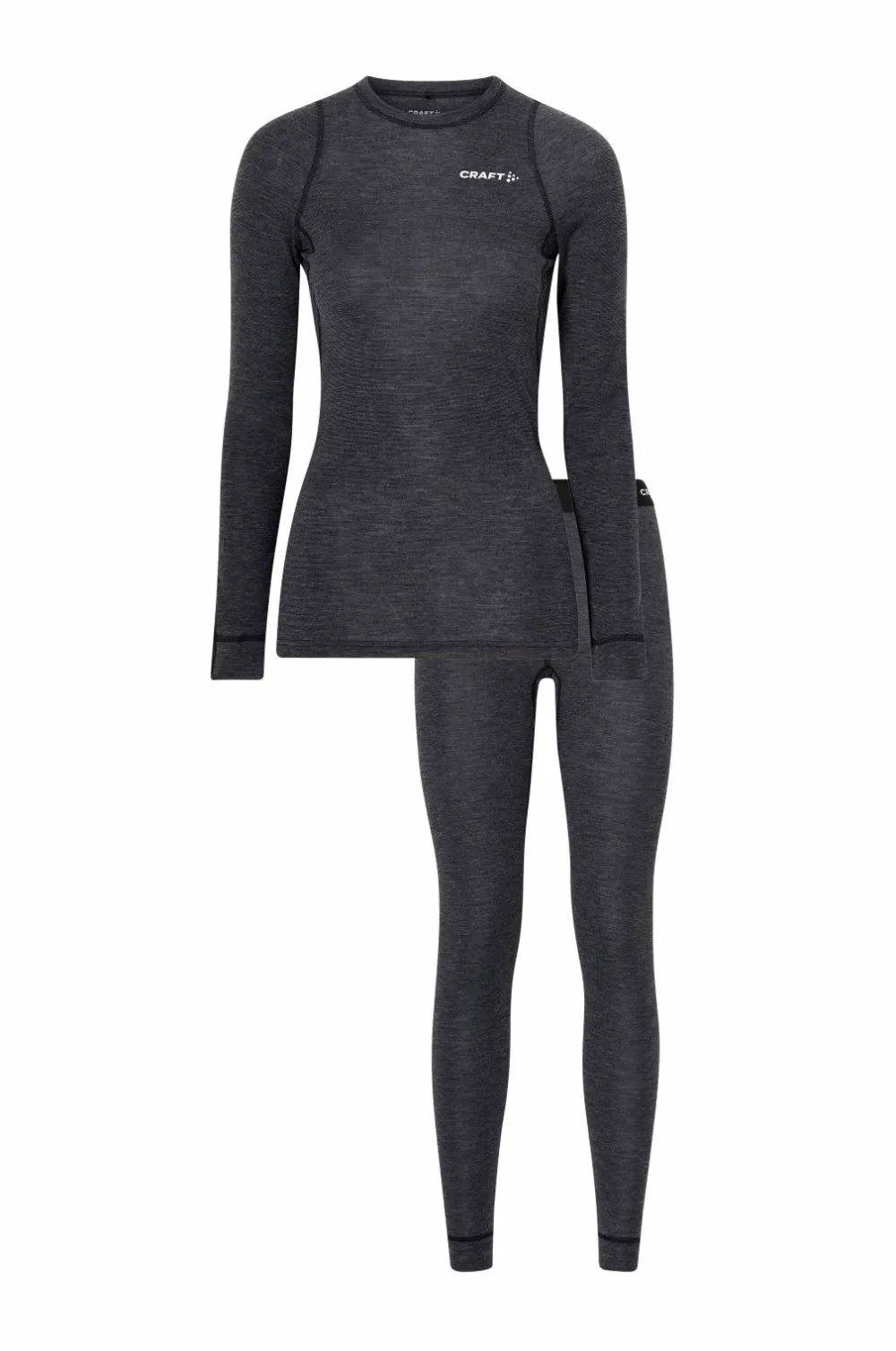 Skiundertøj Core Wool Merino Set W fra Craft i varm, blød og funktionel blanding af merinould og polyester som regulerer temperaturen perfekt under aktivitet af lav og mellemhøj intensitet. Tøjet holder dig varm, også når det er vådt. Trøje med rund halsudskæring og ribkant i ærmekant. Bukser med elastiklinning og ribkant i benkant.