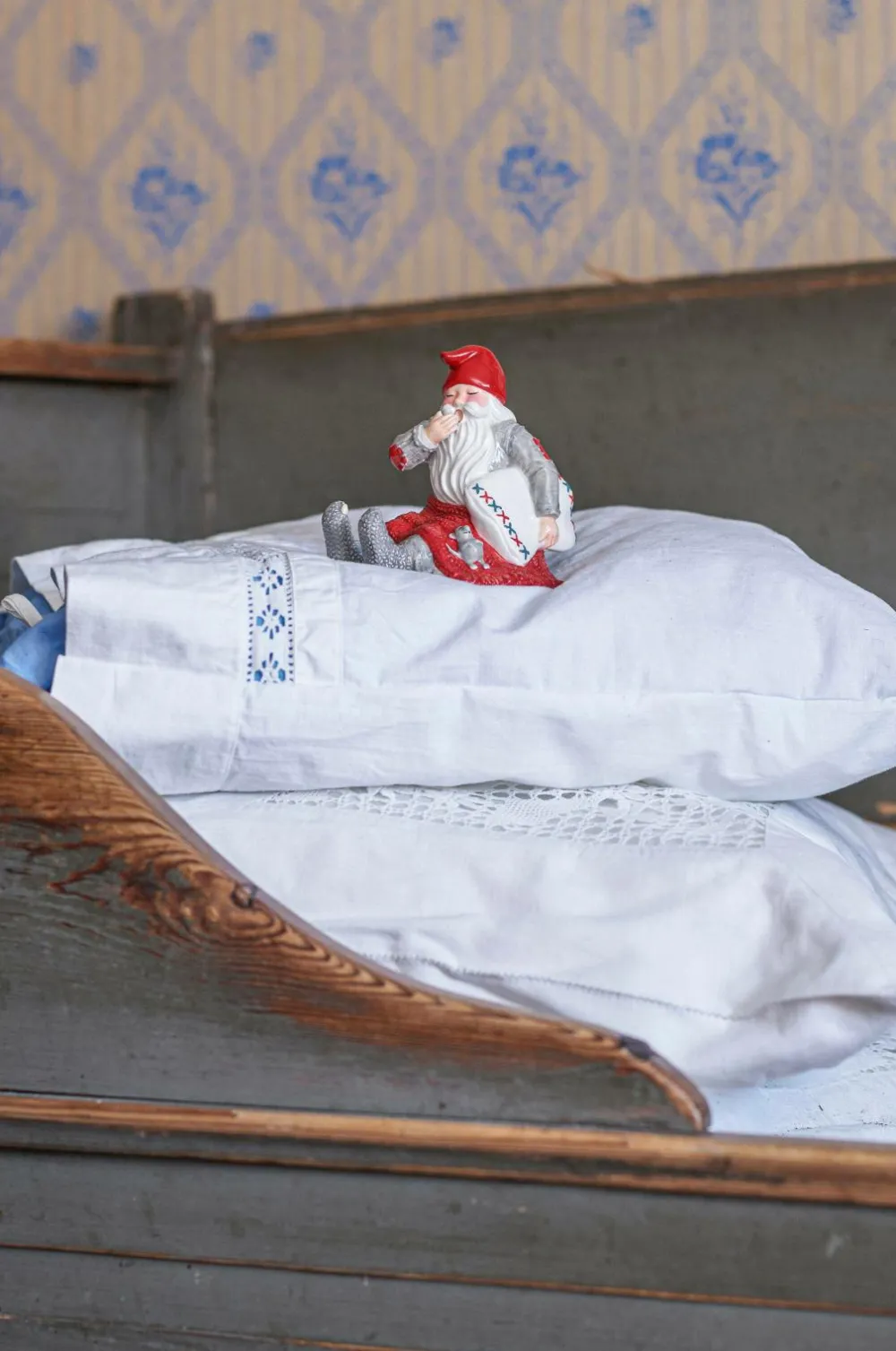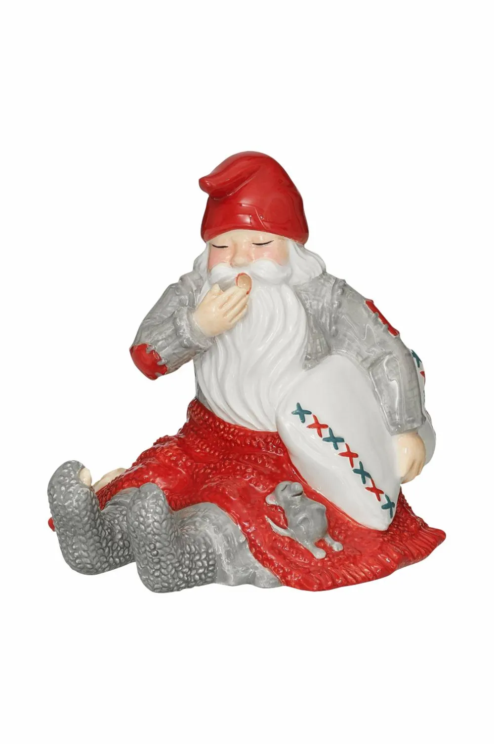Håndmalet julemand i keramik. Serien raggsock med detaljer fra gammel svensk strik. Design marita lord
