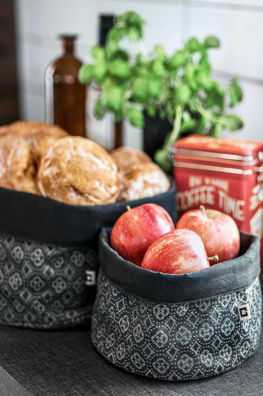 Stofkurv i jacquardvævet tekstil. Design af Marita Lord .