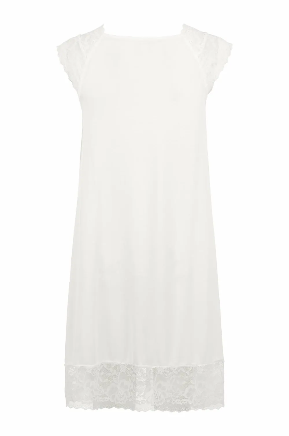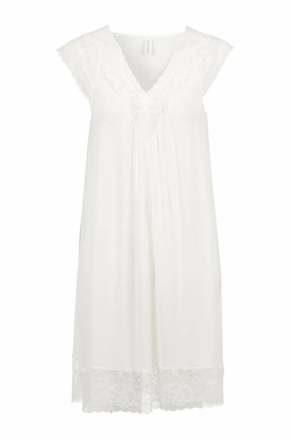 Ærmeløs natkjole med en elegant V-formet blondedetalje ved halsen og blonder rundt om forneden. Viskosestoffet giver en glat pasform, der rammer den perfekte balance mellem elegance og komfort.