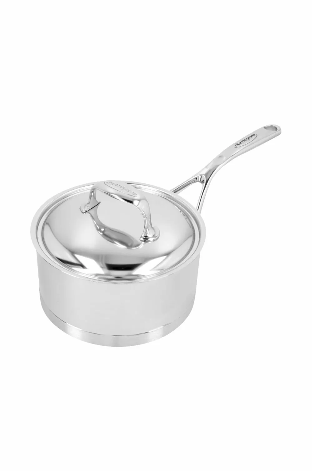 Kasserolle med låg fra Demeyeres Atlantis-serie. Kasserollen er 9 cm høj, har en diameter på 18 cm og en volumen på 2,2 l. Teknikken med rustfrit stål og aluminiumskerne giver en effektiv varmeledning, så temperaturen fordeles jævnt. Kasserollen kan anvendes på alle typer komfurer, også induktion. Det lange håndtag af rustfrit stål letter håndteringen. Det tætsluttende låg sørger for, at der ikke slipper varme ud. For at forenkle rengøringen er hele overfladen behandlet med Silvinox®, en elektrokemisk overfladebehandling. Det gør, at den sølvhvide farve på det rustfri stål holder længe.