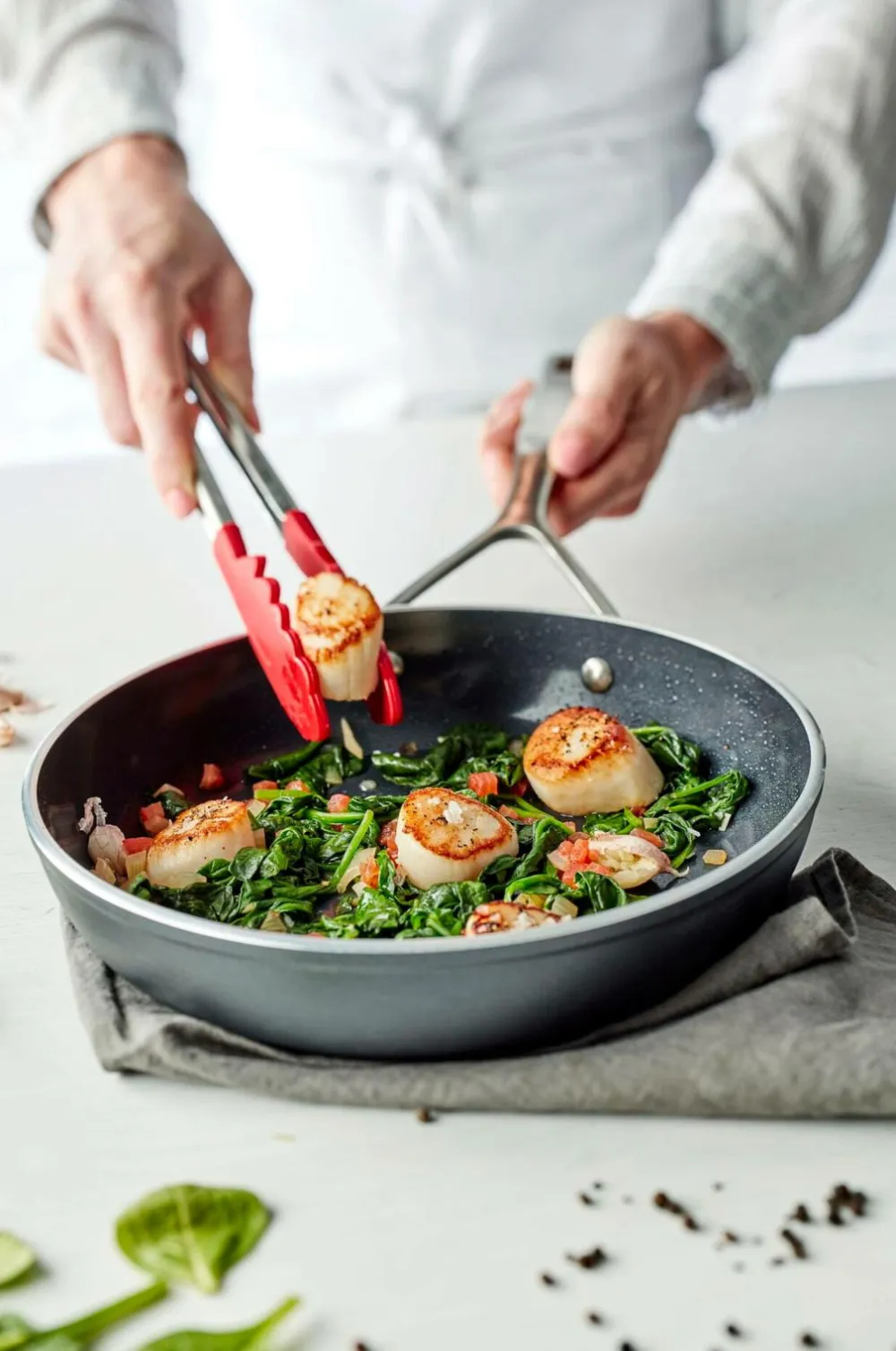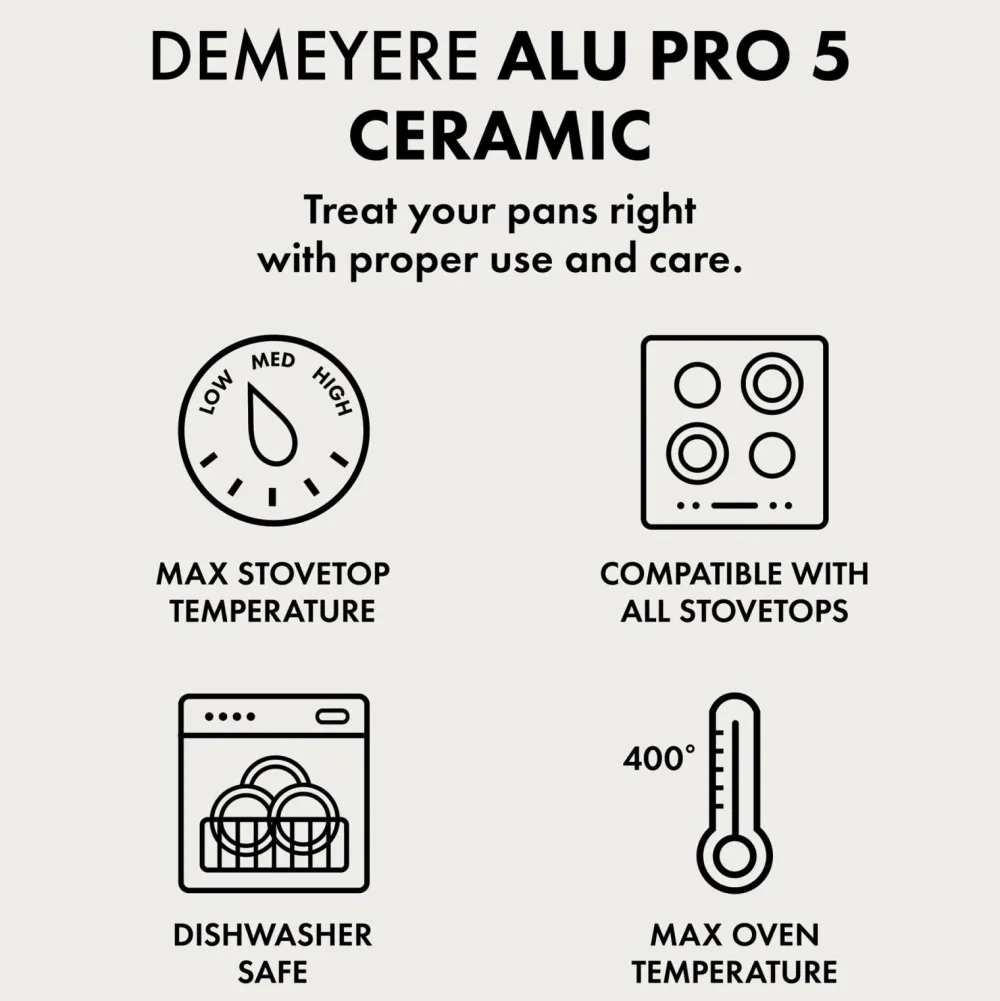 Med denne robuste og samtidig lette 28 cm alu pro 5 stekpanna kan du stege kyllingspett, cordon bleu, cikoria, potatisskivor, panerade grönsaksburgare osv. Så godt du kan uden at blive hurtig. Den reptåliga keramiska ceraforce® non-stick-beläggningen erbjuder dig också ett hälsosamt alternativ. Du er sikker på et godt resultat med endnu mindre olie. Brug kun træ- eller silikonetilbehør for at forhindre skader.