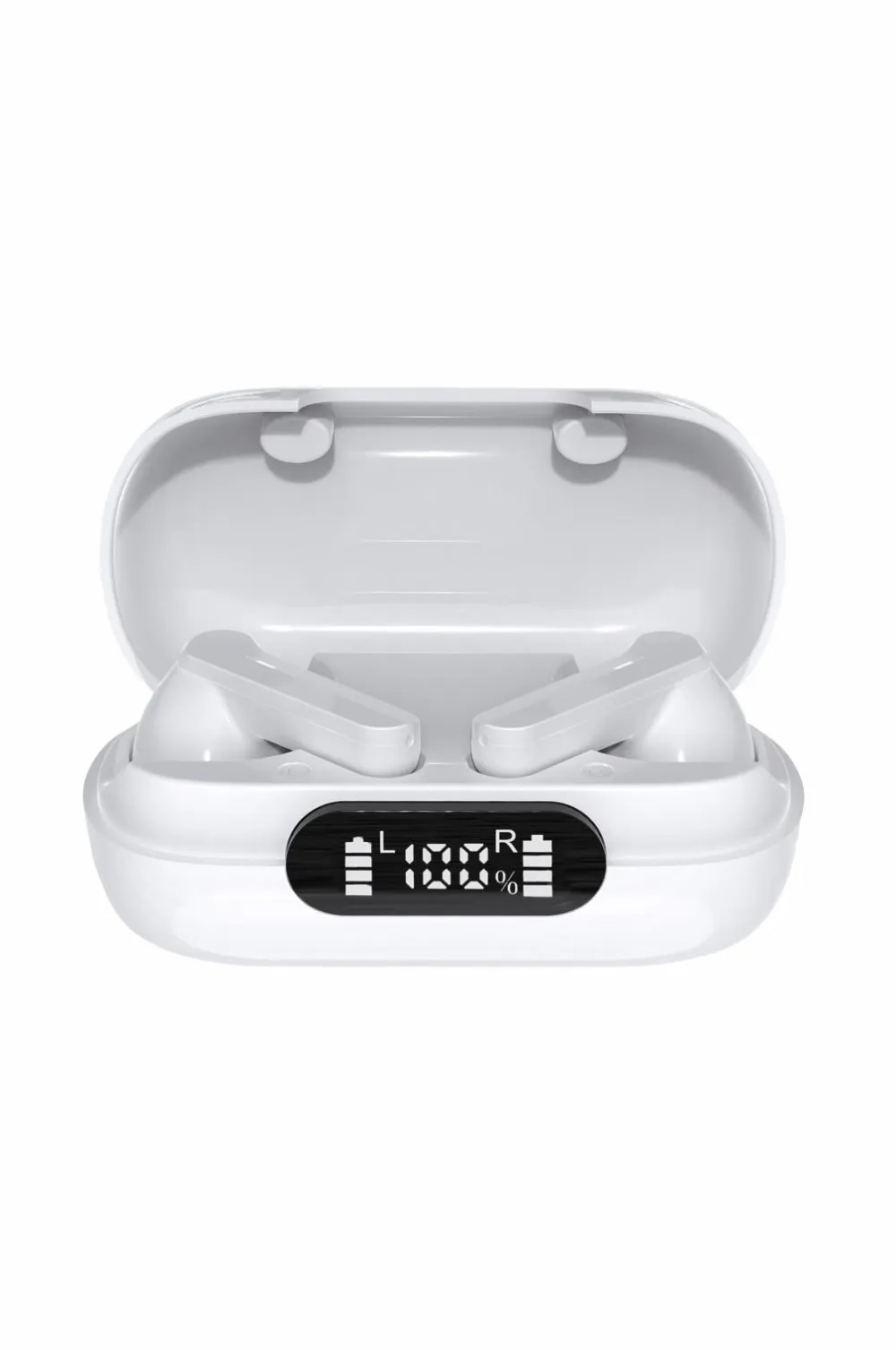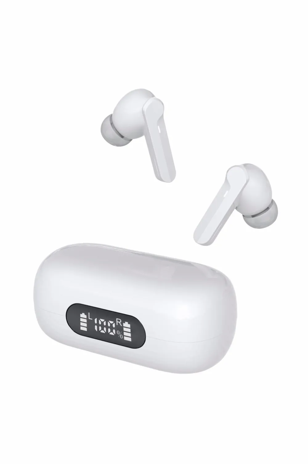 Trådløse Bluetooth-ørepropper med opladningsetui og håndfri funktion.
