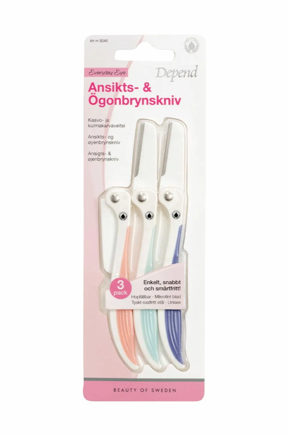 Depend Facial Hair & Brow Razor er værktøjet til alle, der ønsker at fjerne uønsket hårvækst hurtigt og sikkert. Med et mikrofint blad af tysk rustfrit stål af høj kvalitet kan brynene formes nemt og smertefrit. Denne foldbare barbermaskine er designet til nemt at fjerne små, korte hår samt fine vellus-hår i ansigtet, på halsen og andre steder på kroppen, hvor præcision er afgørende for at opnå de bedste resultater.