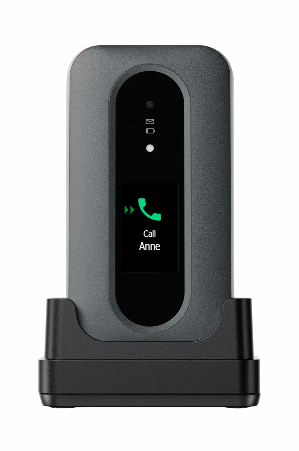 Doro Leva L31 er en foldbar telefon med tydelige knapper og en 2,8-tommers skærm. Funktionerne omfatter HD Voice, vejrbestandighed, kompatibilitet med høreapparater og genveje til favoritter og kamera. Sikkerhedsknap sender GPS-position i nødstilfælde. Inkluderer bordstativ, telefon, batteri og USB C-kabel. Bemærk: Der medfølger ingen oplader.