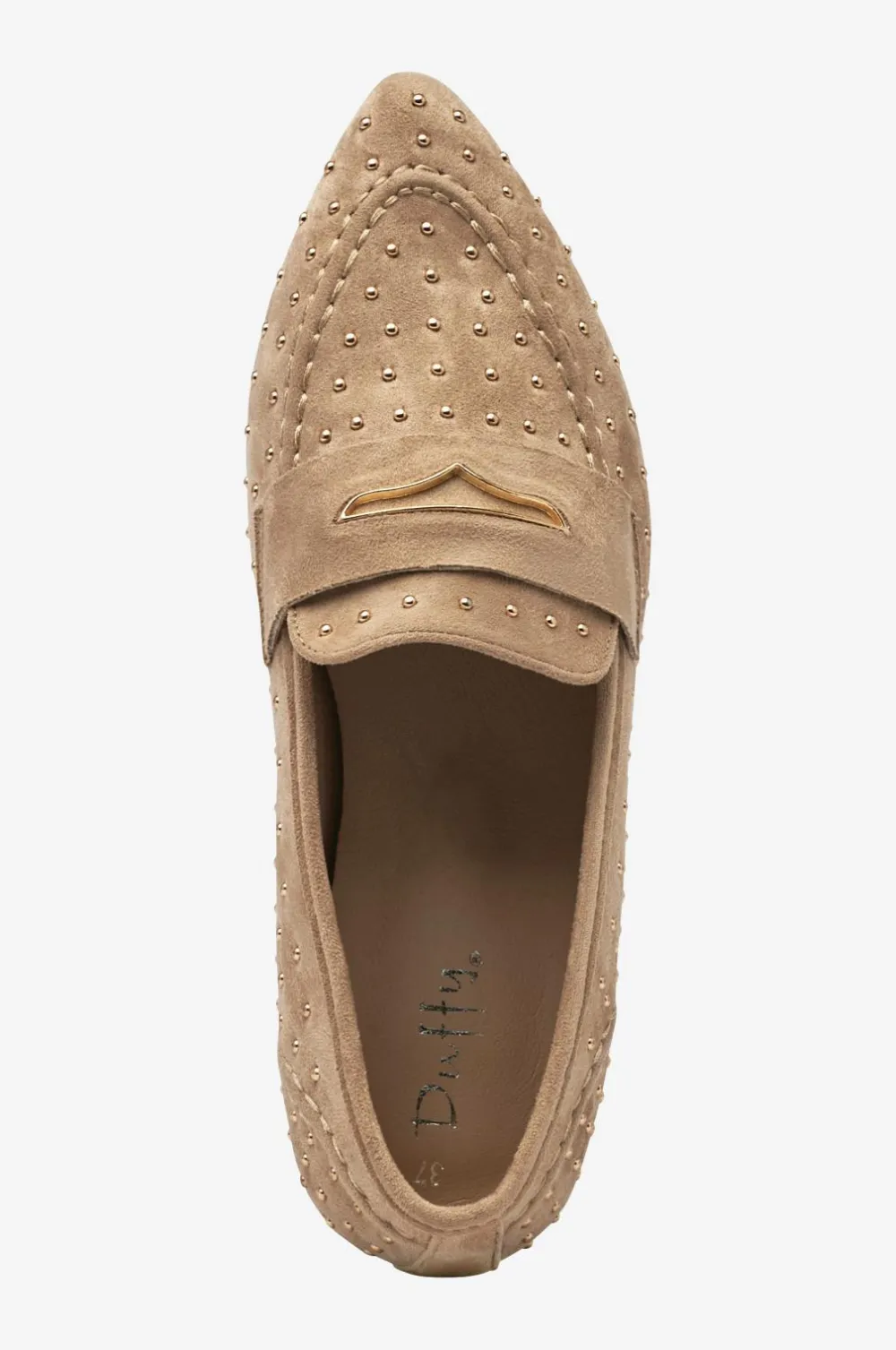 • Dekorative, guldfarvede nitter hele vejen rundt